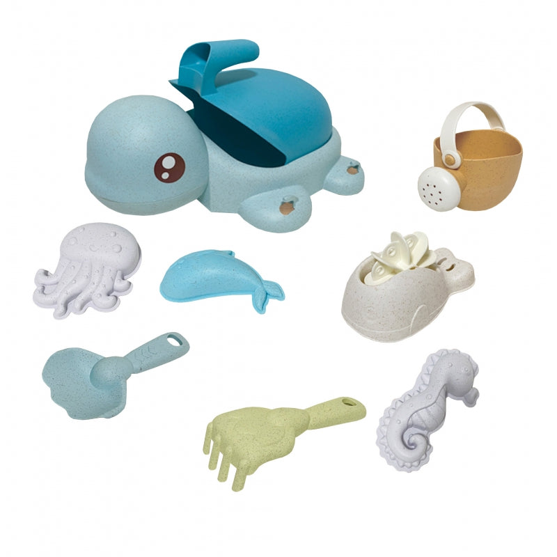 GREEN serijos WOOPIE smėlio rinkinys Turtle Sand Set puikiai papildys smėlio dėžę ar net sodą. Rinkinį sudaro 8 elementai: vėžlys, šaukštas, laistytuvas, 3 formelės, mentelė, grėblys ir ritė. Kibiras turi patogią nešiojimo rankeną. Rinkinys yra madingiausio pastelinio dizaino ir buvo pagamintas iš organinės biologiškai skaidžios (savaime suyrančios) medžiagos. Be to, jis turi būti kompostuojamas. Saugus vaikams – dezinfekuojamas 120 laipsnių temperatūroje. Puiki pramoga smėlio dėžėje, paplūdimyje ir net sode garantuota! Ekologiškas produktas!