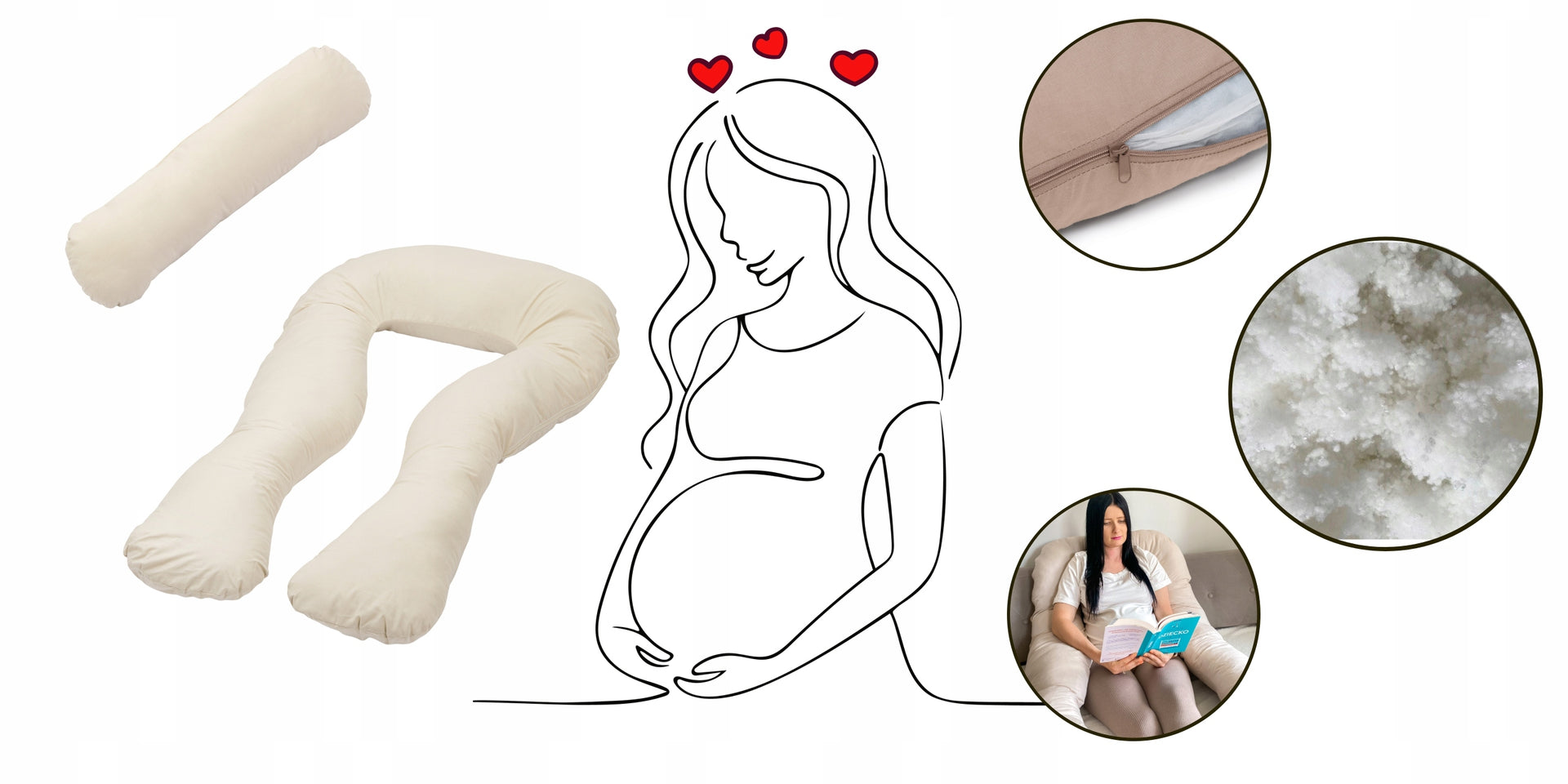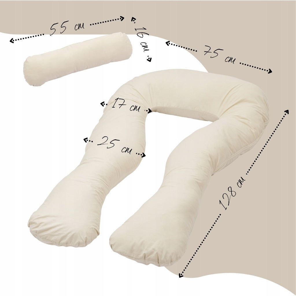 „Rogal“ Kreminė Nėštumo Pagalvė Moterims (U formos, miegui ir žindymui) + dovanų pagalvė