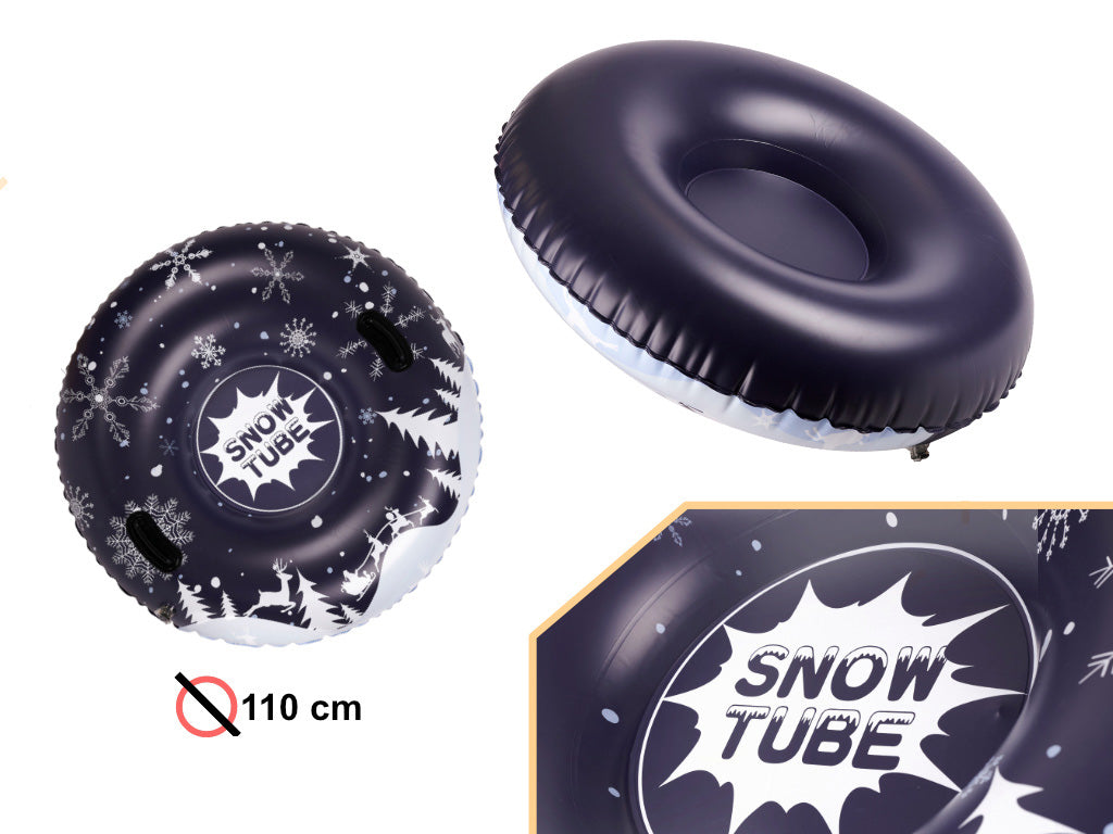 Pasiruoškite neužmirštamiems žiemos nuotykiams su šiomis didelėmis pripučiamomis rogėmis-ratu! Šis tvirtas ir patogus ratas, kurio skersmuo yra 110 cm, idealiai tinka smagiai leistis nuo apsnigtų kalvų ir mėgautis greičio teikiamu džiaugsmu.