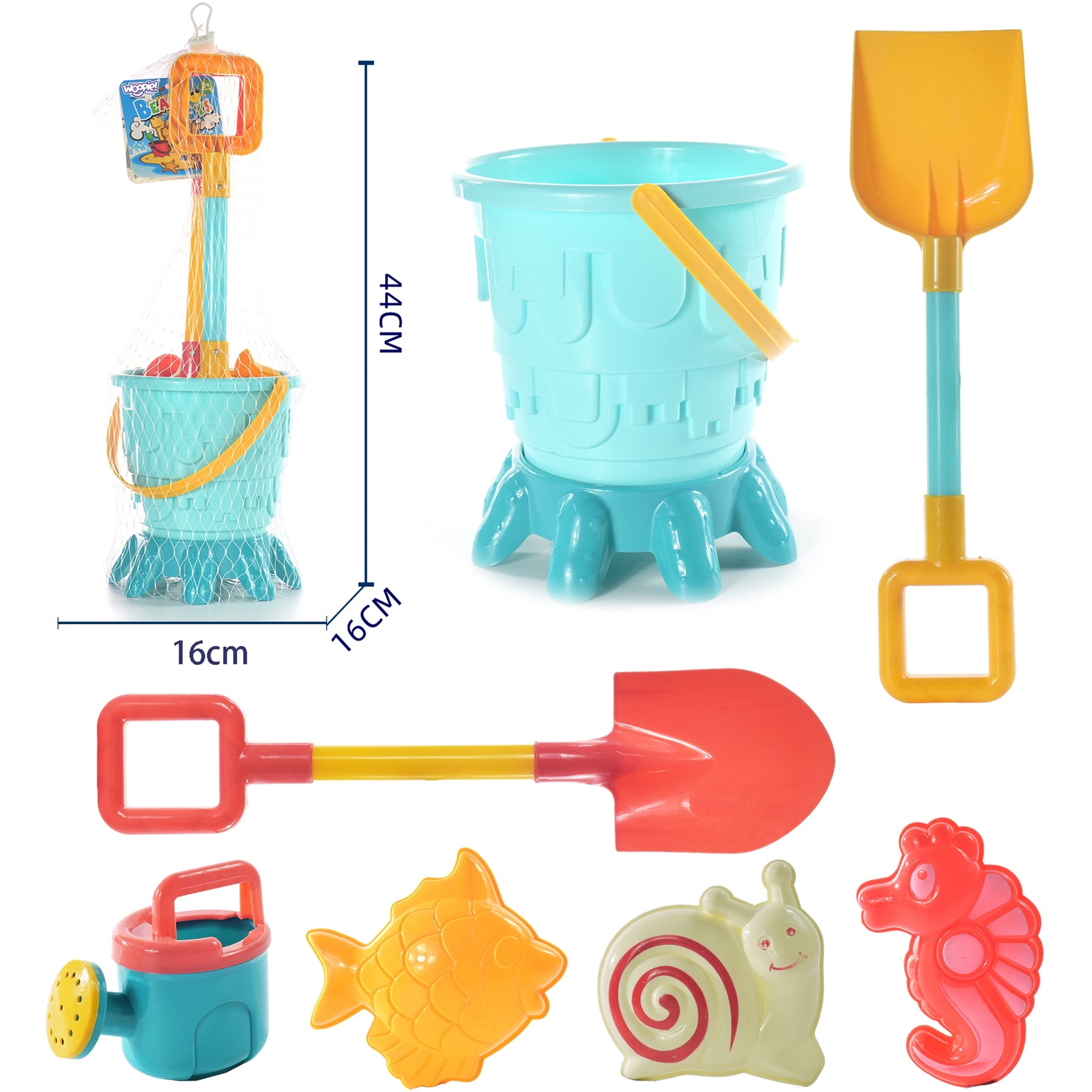 Woopie smėlio žaislų rinkinys – kibirėlis, formelės, kastuvėliai ir laistytuvas (7 dalys)