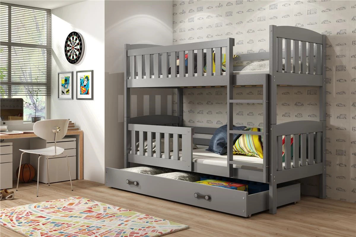 Suvokiame, kaip sunku vieną kambarį pritaikyti dviems vaikams, ko gero, visiškai skirtingų charakterių ir skonių. Žinome, kaip svarbu kovoti dėl kiekvieno centimetro. Todėl į savo pasiūlymą įtraukėme Kubuś dvigulę lovą, kuri yra puikus sprendimas bent kai kurioms jūsų išdėstymo problemoms. Dviejų aukštų struktūra leidžia optimaliai išnaudoti erdvę, paliekant daugiau erdvės žaisti ar mokytis. Konstrukcija iš pušies medienos sutvirtinta aukštos kokybės plieniniais varžtais yra stabili ir patvari. Tai savo ruožtu reiškia jūsų vaikų saugumą miego metu ir ramų poilsį. Galimybė įrengti turėklus abiejuose lygiuose – duoklė patiems mažiausiems ir rūpinimosi jais rezultatas. Jie apsaugo net pačius judriausius ir energingiausius vaikus nuo kritimo. Kliūtys yra universalios, Jūs nuspręsite dėl jų padėties surinkimo metu. Iš spyruoklinių lentų pagamintas rėmas puikiai palaiko stuburą. Grafito spalvą gavome nudažius medžio paviršių visiškai saugiais ir antialerginiais dažais, todėl gaminys yra saugus net jautrią odą turintiems vaikams. Neutralios spalvos tinka tiek berniuko, tiek mergaitės kambariui, o tai leis išvengti nepatogių diskusijų su mažyliais.