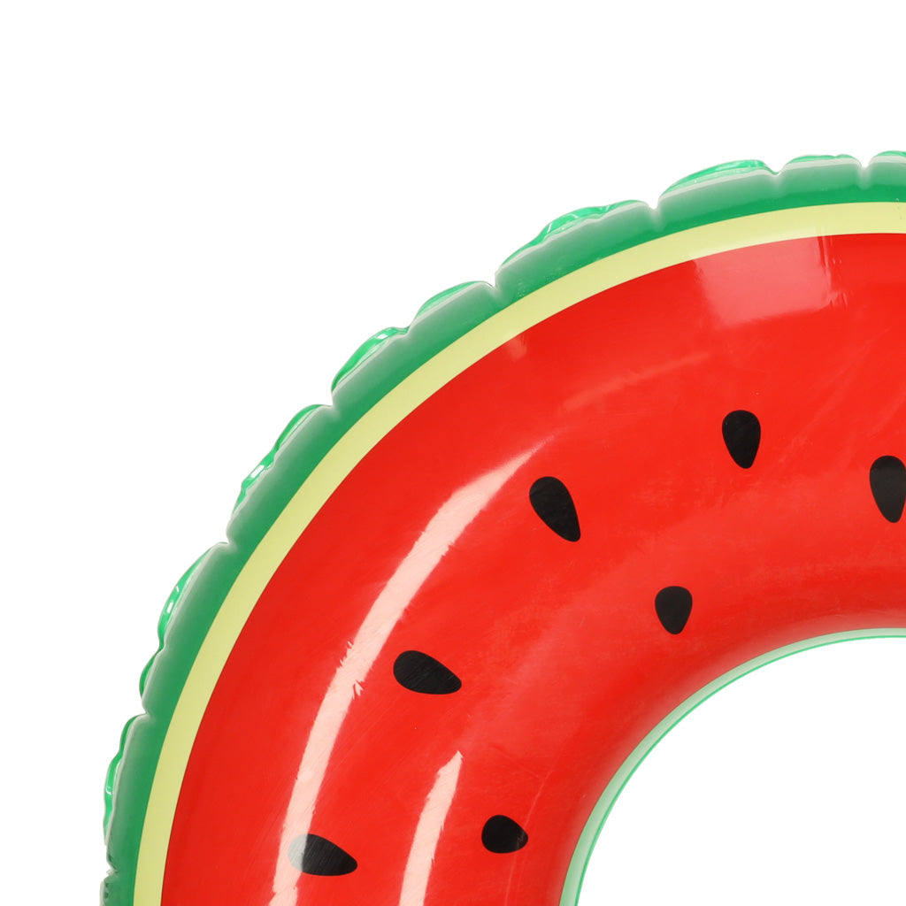 Spalvingas pripučiamas ratas formos Arbūzas, pagamintas iš aukštos kokybės PVC plastiko, kad būtų užtikrintas ilgaamžiškumas.
