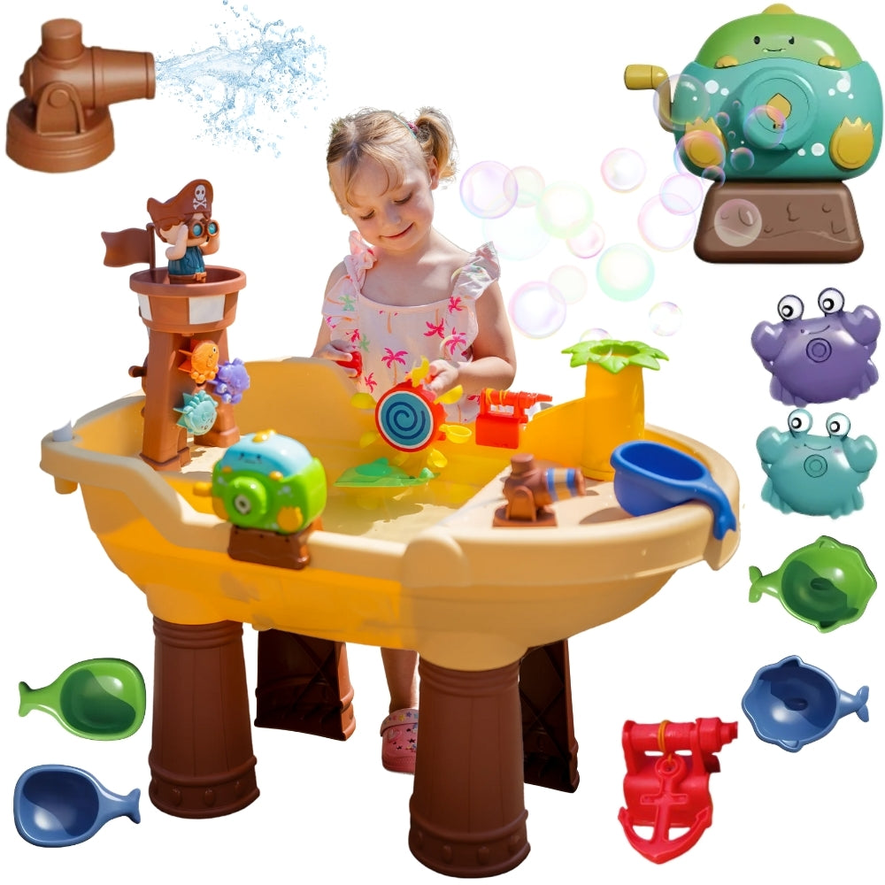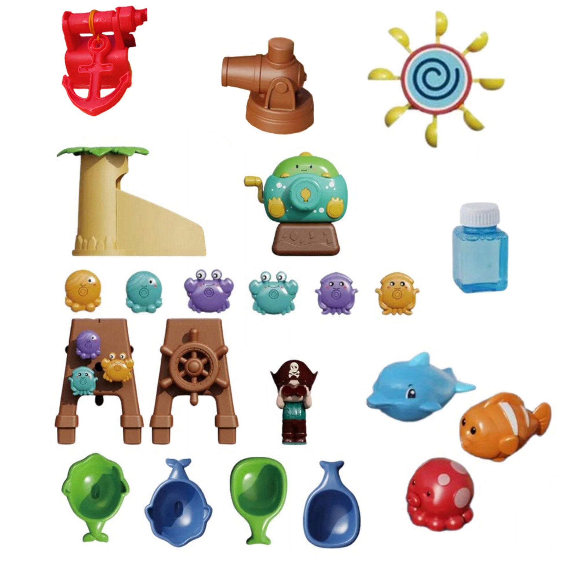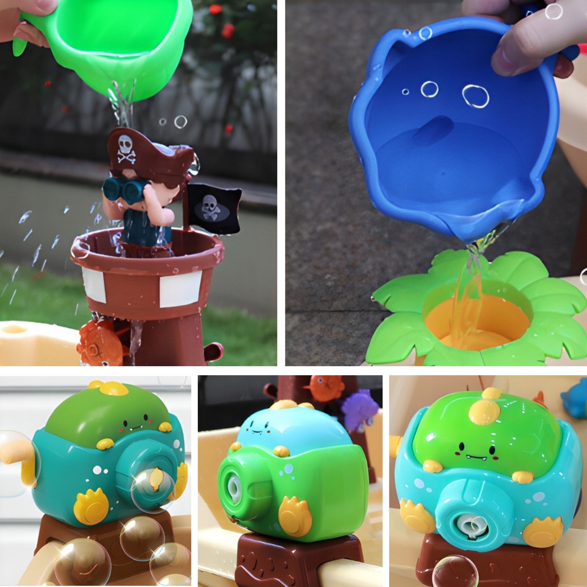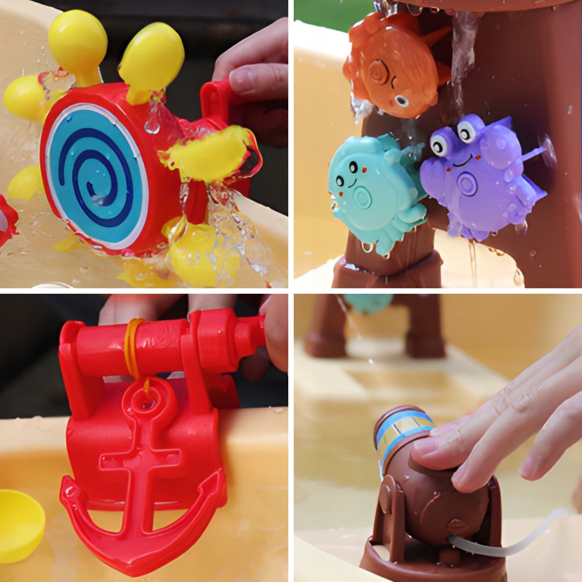 - Piratų priedai: Rinkinys apima vandens patranką ir vandens ratus, kurie skatina aktyvią ir vaizduotę lavinančią veiklą.