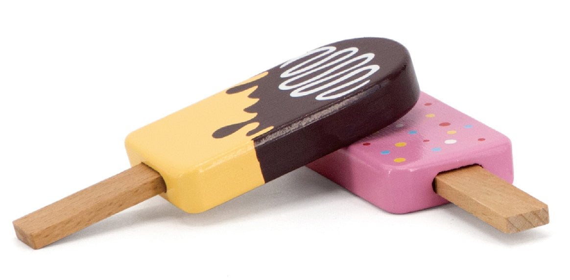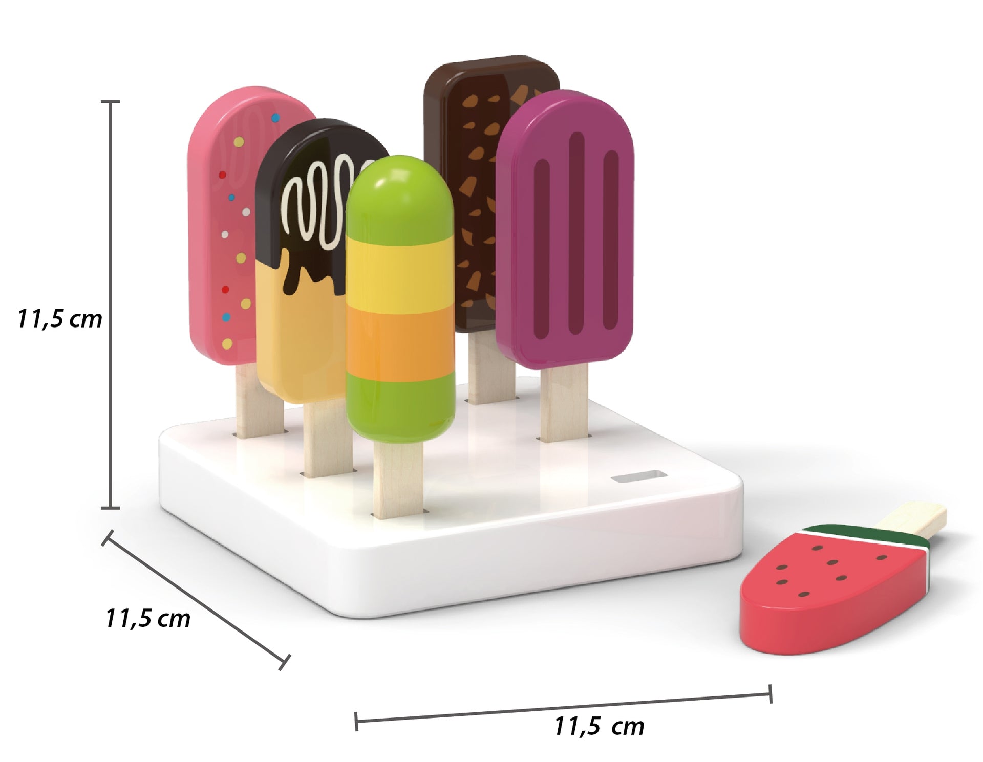 VIGA medinis ledų ant pagaliuko rinkinys su stovu, 6 vnt, pagrindinis vaizdas su visais ledais – pagrindinis vaizdas