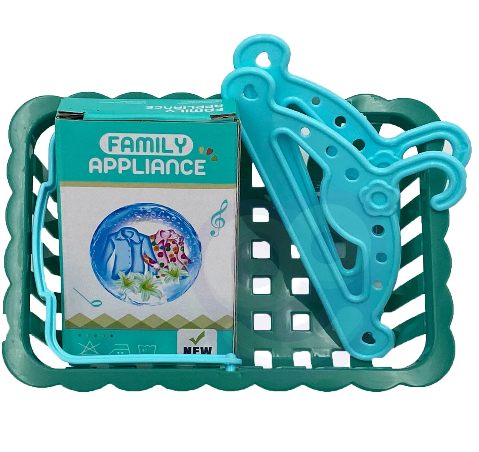 - Pilnas komplektas: Rinkinį sudaro stabili lyginimo lenta, lygintuvas, skalbinių krepšys, du pakabėliai ir žaislinė skalbimo miltelių pakuotė.