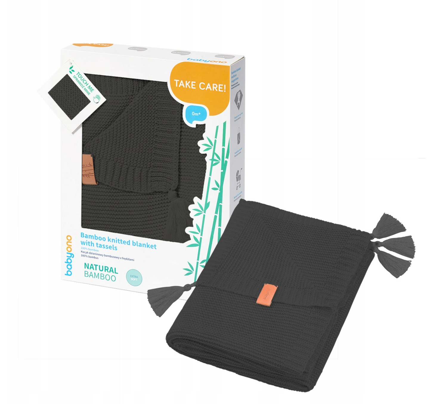 Megzta bambukinė antklodė su kutais BabyOno 546/01 – pagrindinis vaizdas