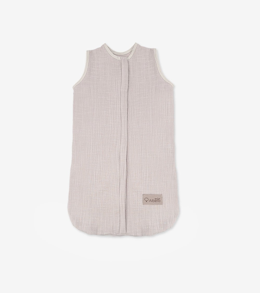 - Miegmaišis puikiai tinka vasarai, nes jis pagamintas iš muslino audinio, idealiai tinkančio šiam metų laikui. Muslinas - tai audinys, pagamintas iš 100 % medvilnės. Dėl būdingo laisvo pynimo audinys yra minkštas, švelnus, sugeriantis ir erdvus. Medvilninis muslinas yra minkštas ir malonus kūdikio odai, tačiau labai patvarus. Su kiekvienu skalbimu muslinas tampa vis minkštesnis ir minkštesnis, o dėl natūralaus "raukšlėjimosi" jo nereikia lyginti. Jis laikomas vienu švelniausių ir gryniausių audinių, pasižymi antialerginėmis savybėmis. - Jam būdinga raukšlėta struktūra ir papildomi siūlai, kurie sukuria subtilų raštą, primenantį lino tekstūrą.