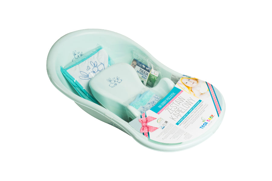 • Į komplektą įeina: 86 cm kubilas, vonios sėdynė, maudymosi užvalkalas, maudymosi pirštinė ir vandens nutekėjimo komplektas.