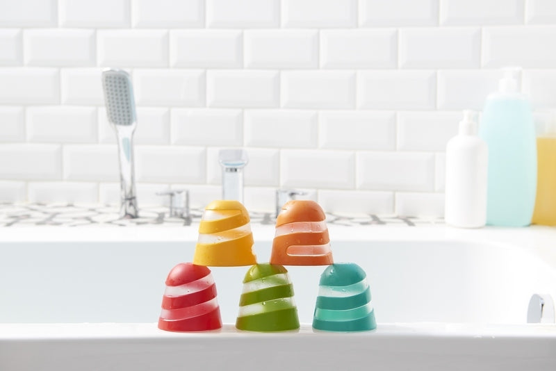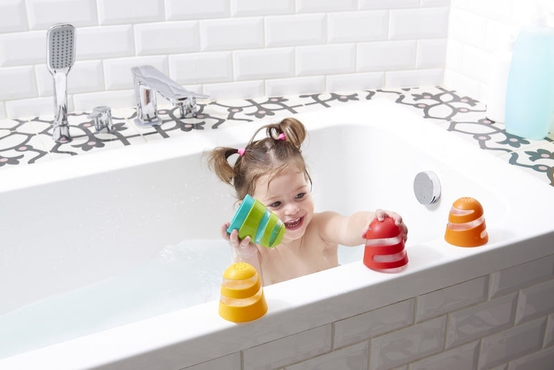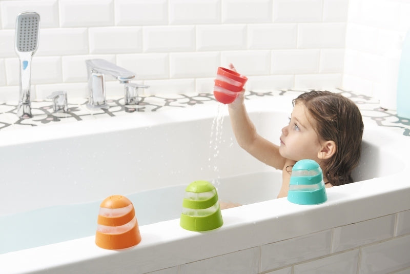 Spalvoti vonios puodeliai, kurie užtikrina begalinį maudymosi malonumą ir lavina vaiko motoriką. O kai ateis laikas žaisti, sudėkite juos vieną ant kito ir laikykite!