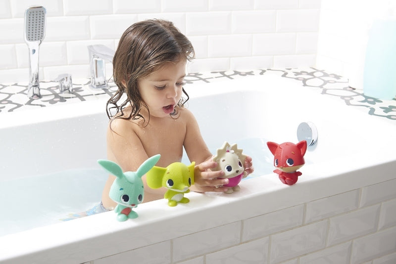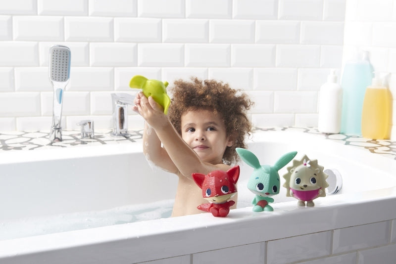 Kiekvienas mielas personažas plūduriuoja ir prisipildo vandens. Suspauskite juos ir jie išsitaškys iš vandens! Žaislai skatina vaiką mankštinti rankų ir pirštų raumenis, palaiko smulkių judesių vystymąsi ir akių-rankų koordinaciją.