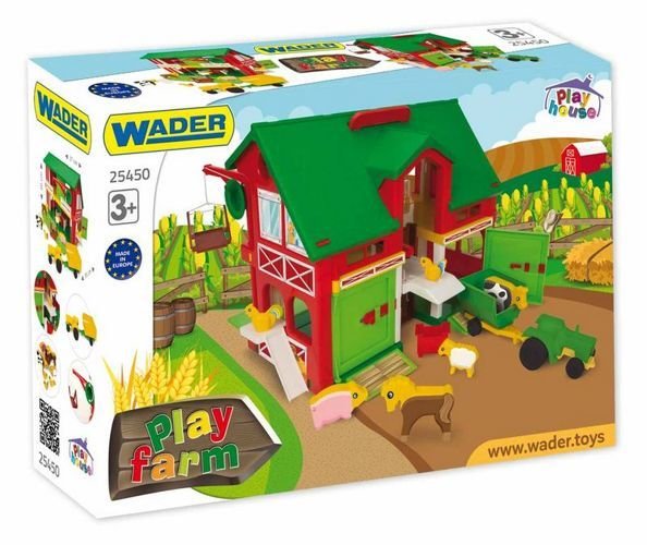 - komplekte yra namelis su atidaromomis durimis, liftas, kranas, traktorius su priekaba, gyvūnai (arklys, gaidys, višta, karvė, kiaulė, avis) ir lipdukai