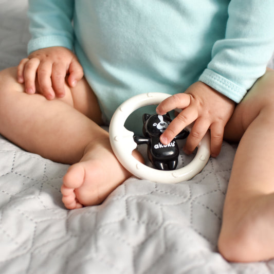 Juodai baltas barškutis buvo sukurtas specialiai mažiausiems vaikams. Pagaminta iš patvarių ir saugių medžiagų. Jis neturi aštrių kraštų. Specialiai parinkta forma leidžia patogiai suimti ir laikyti mažose rankose. Juoda ir balta spalvos skatina kūdikio regėjimą, kuris dar neskiria spalvų. Lavina regos-klausos koordinaciją. Produkte visiškai nėra bisfenolio A (0 % BPA).