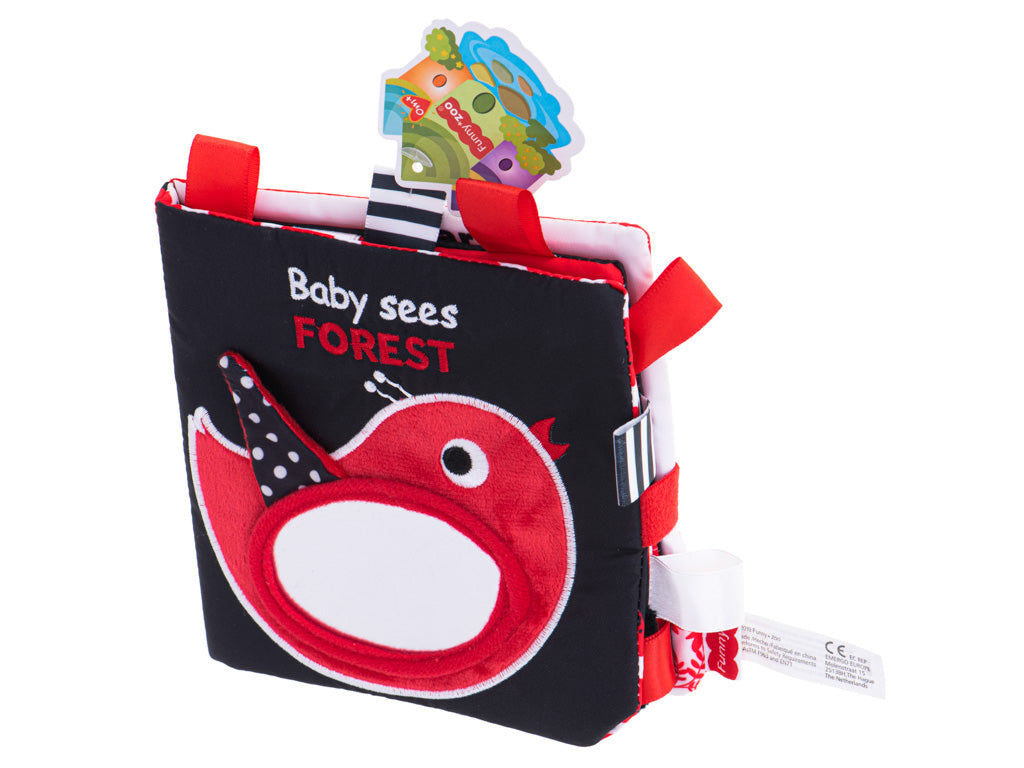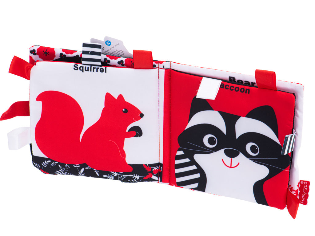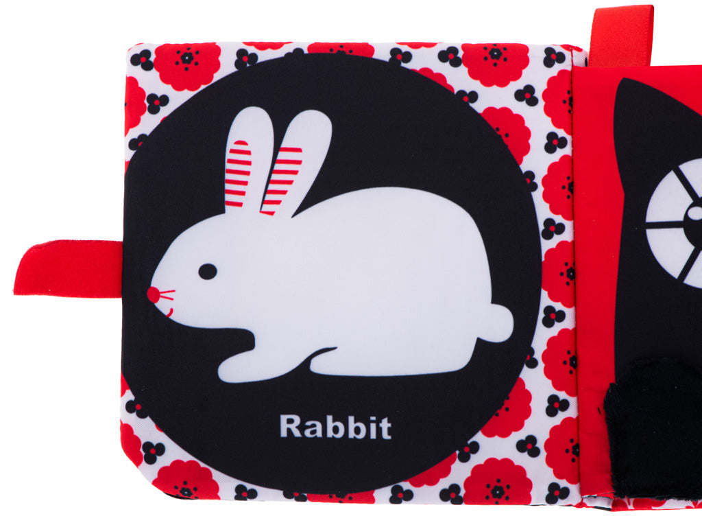 Kontrastingų raštų stebuklinga medžiaginė knyga puikiai tinka vaikams, kurie dar tik pradeda pažinti pasaulį. Balti, juodi ir raudoni paveikslėliai bus puiki įžanga į mokymąsi apie gyvūnus.