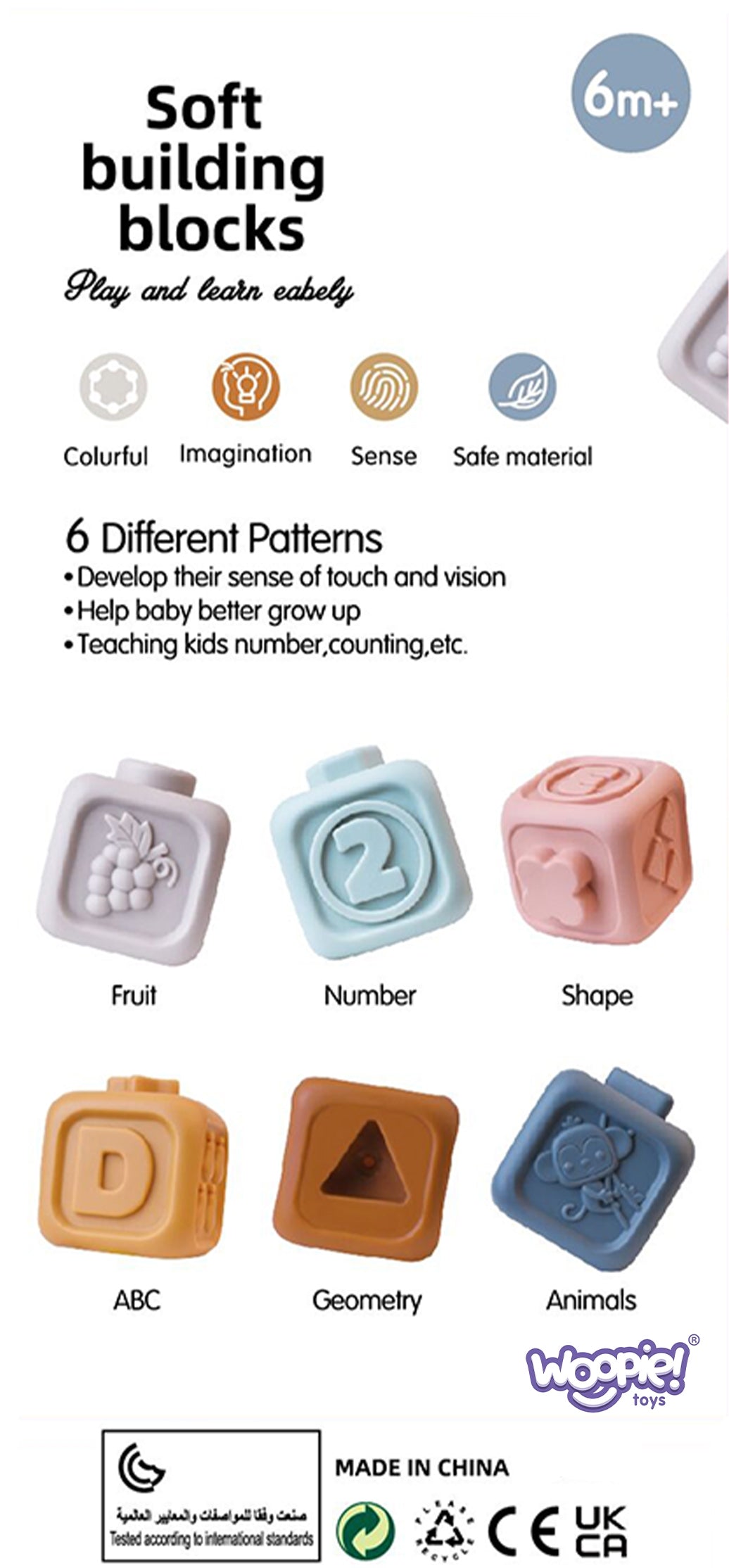 WOOPIE BABY 2in1 Edukacinis rinkinys: sensoriniai kaladėlės-piramidė su skaičiais ir kramtuku – vaizdas 4