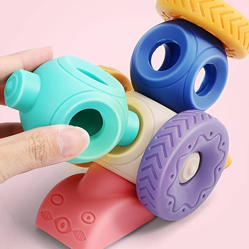 WOOPIE Sensorinių blokų galvosūkis sudomins kiekvieną mažylį. Dėl savo įdomių formų, spalvų ir gebėjimo skleisti garsus spaudžiant, jie puikiai skatina vaiko regos-klausos koordinacijos, motorikos ir lytėjimo pojūčio vystymąsi . Blokai yra išgaubtų formų su tekstūromis / raštais ir geometrinėmis formomis . Be to, blokai gali būti sujungti vienas su kitu ir statyti įvairias konstrukcijas, pvz., lenktyninį automobilį . Blokai yra minkšti ir malonūs liesti. Dėl savo struktūros jie puikiai tinka ir kaip dantukai . Gražių prislopintų spalvų gaminys skirtas vaikams nuo 6 mėnesių amžiaus.