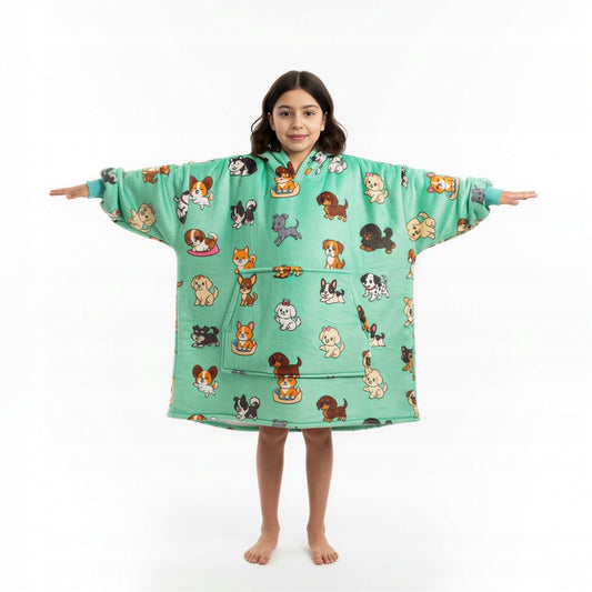Vaikiškas džemperis-antklodė su gobtuvu (oversize)