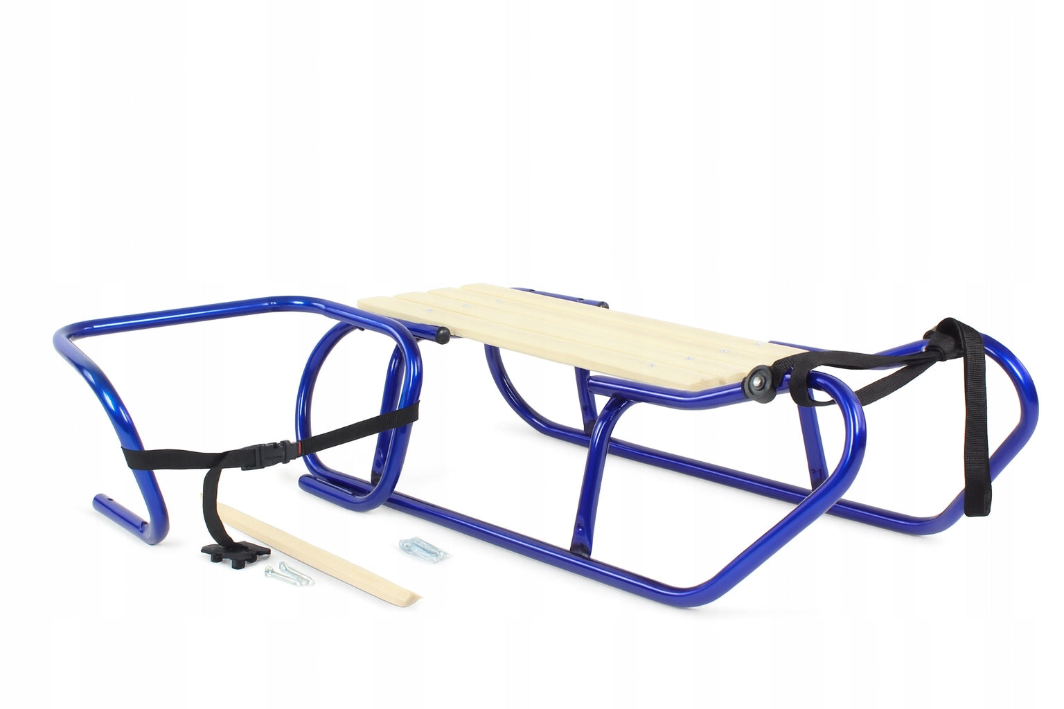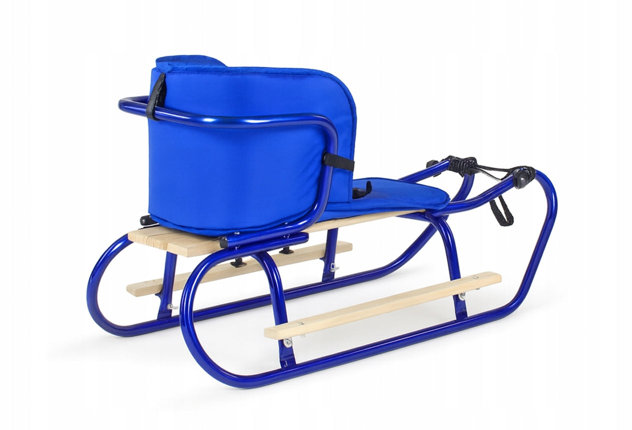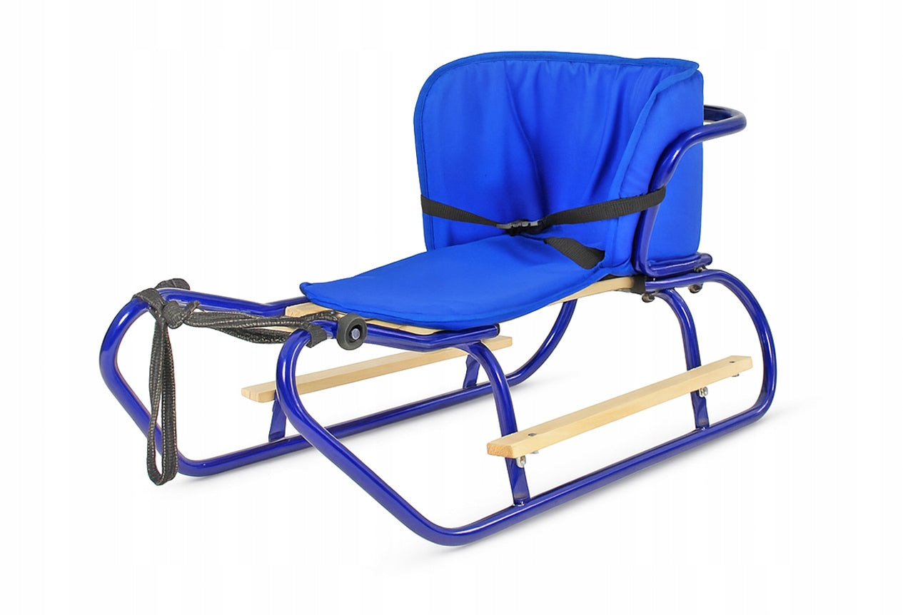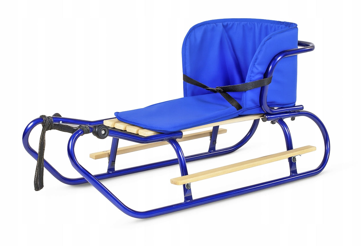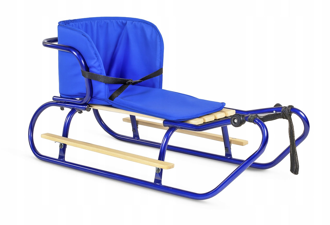 Metalinių Rogučių Komplektas su Nugara, Čiužiniu, Kojų Atramomis ir Diržu – Mėlyna Spalva