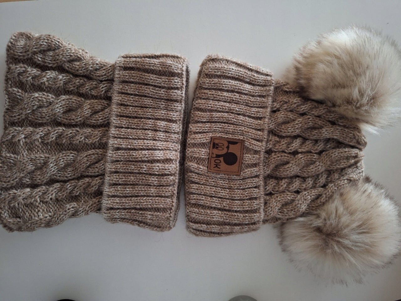 Žieminis kepurės + šaliko komplektas rudas, dydis 46-52 – vaizdas 2
