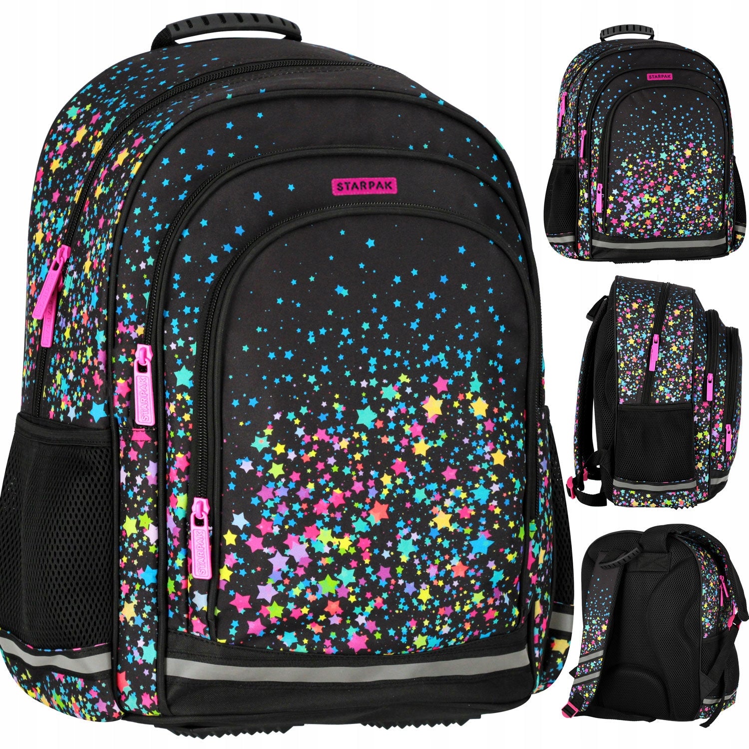 Mokyklos kuprinė-tornisteris, mergaitei, juoda su žvaigždėmis – pagrindinis vaizdas
