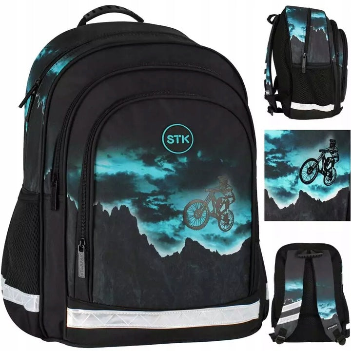 1-3 klasių mokyklinė kuprinė, motociklininkas