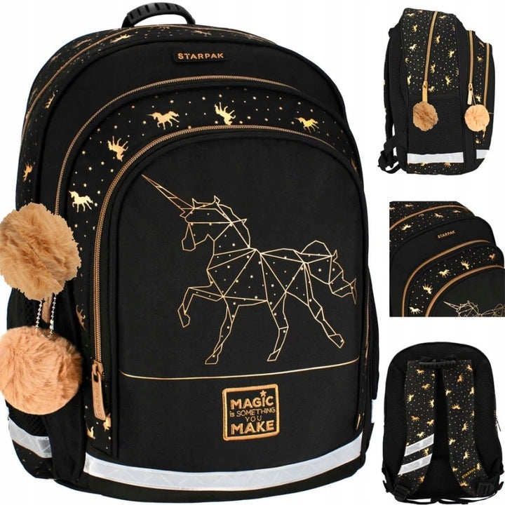 Mokyklos kuprinė-tornisteris, mergaitei, auksinis vienaragis – pagrindinis vaizdas