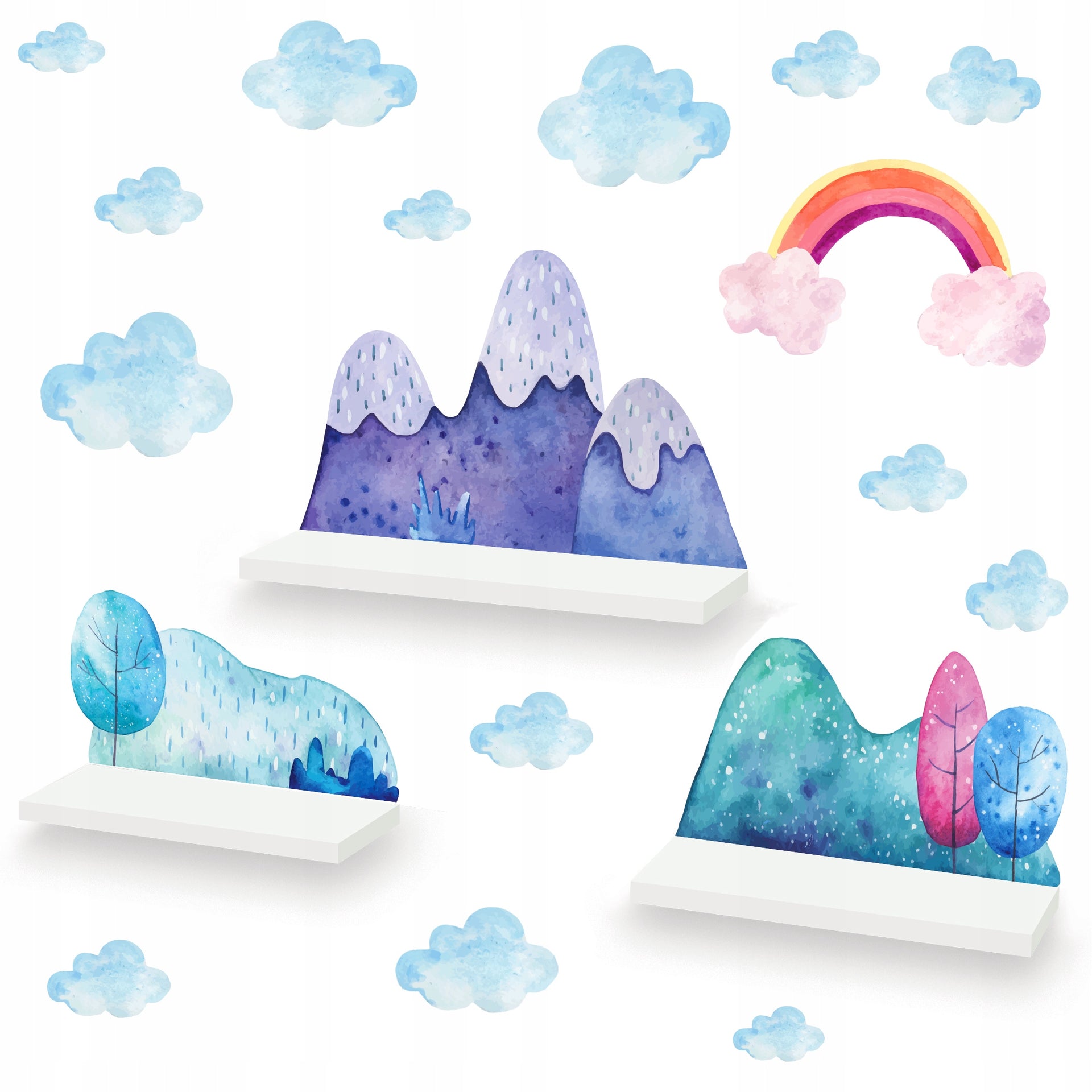 3 vnt debesėlių ir kalnų lentynų komplektas su lipdukais – pagrindinis vaizdas