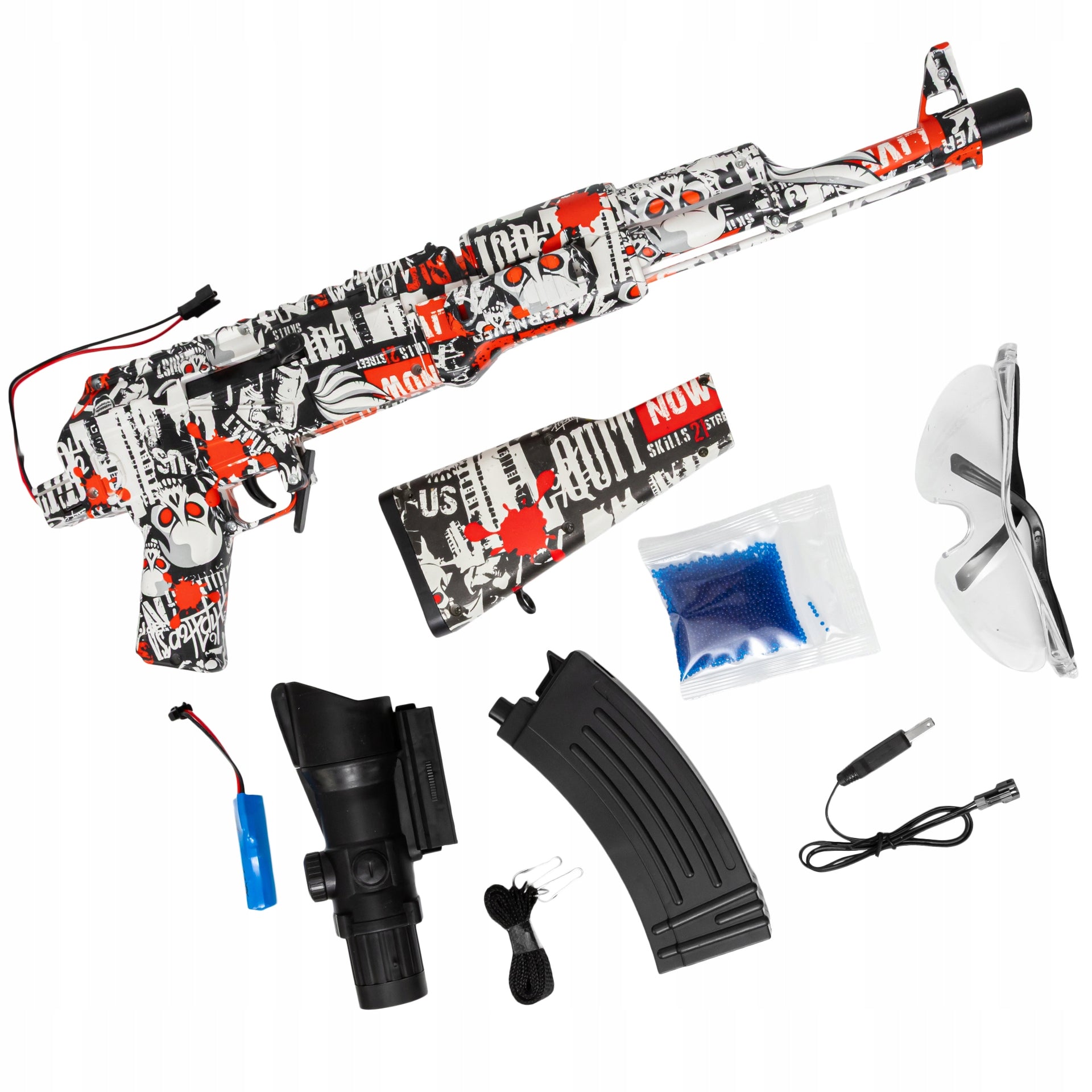 Automatinis šautuvas su gelinėmis kulkomis, dviem šaudymo režimais ir pilnu priedų komplektu