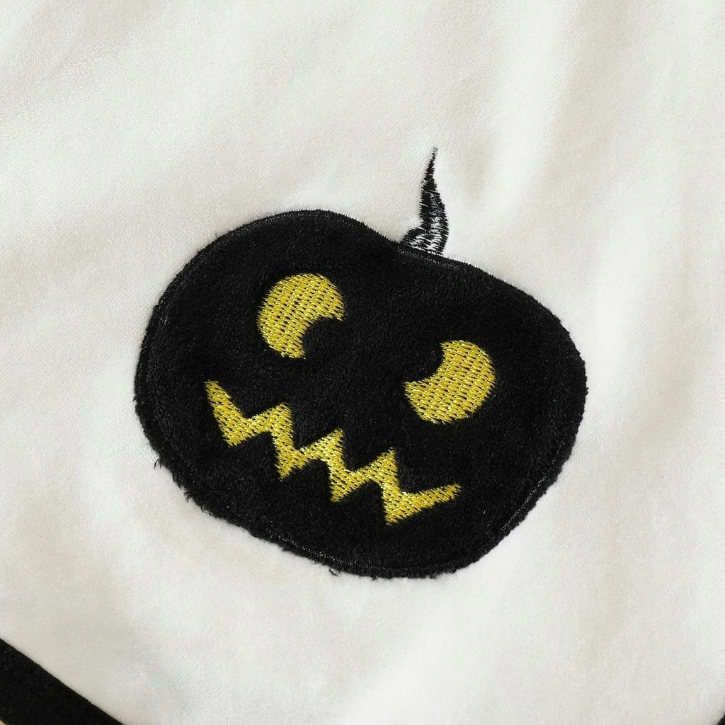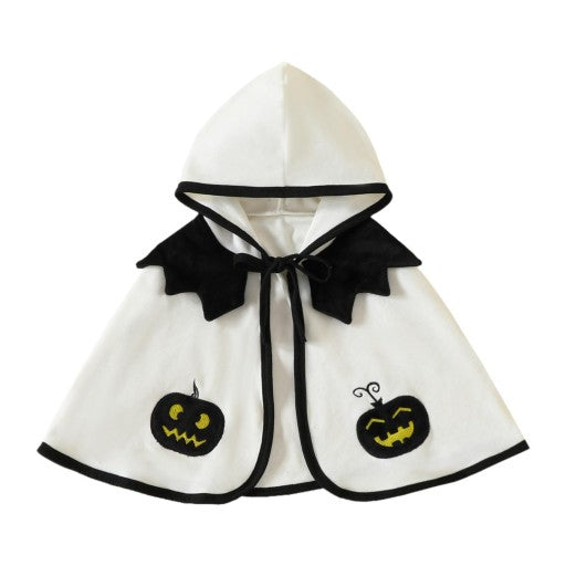 Baltas vaikų pončas su gaubtu "Moliūgas"