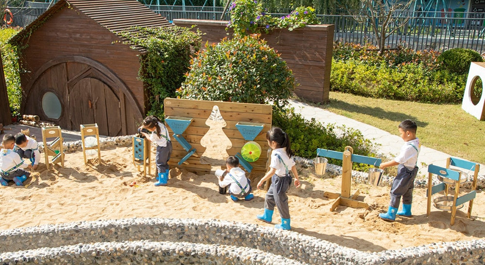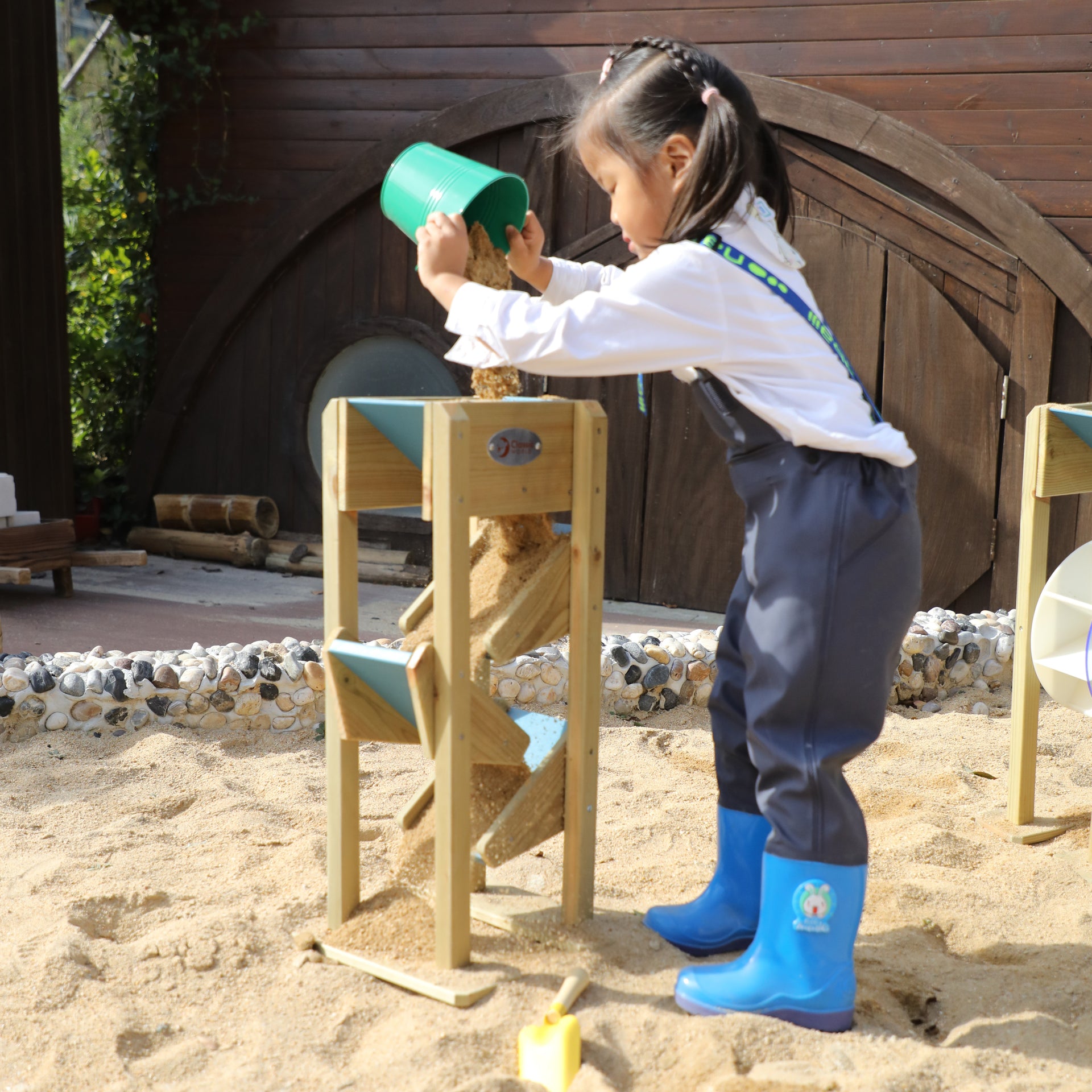 - Interaktyvus veikimas: Viršuje esantis piltuvėlis skatina vaikus pilti smėlį, o stebėjimas, kaip jis keliauja trimis latakais, įtraukia į žaidimą.