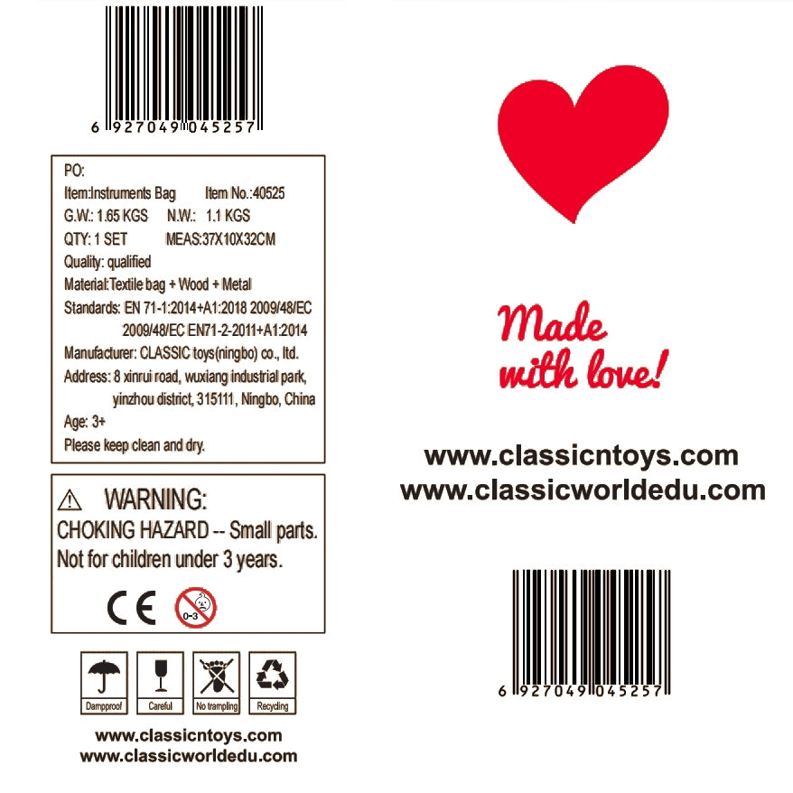 Šie ekologiški ir saugūs žaislai puikiai tinka tiek individualiam žaidimui, tiek grupiniams užsiėmimams, skatindami vaizduotę ir muzikinį jautrumą. Padovanokite savo vaikui galimybę atrasti muzikos džiaugsmą su „Classic World“!