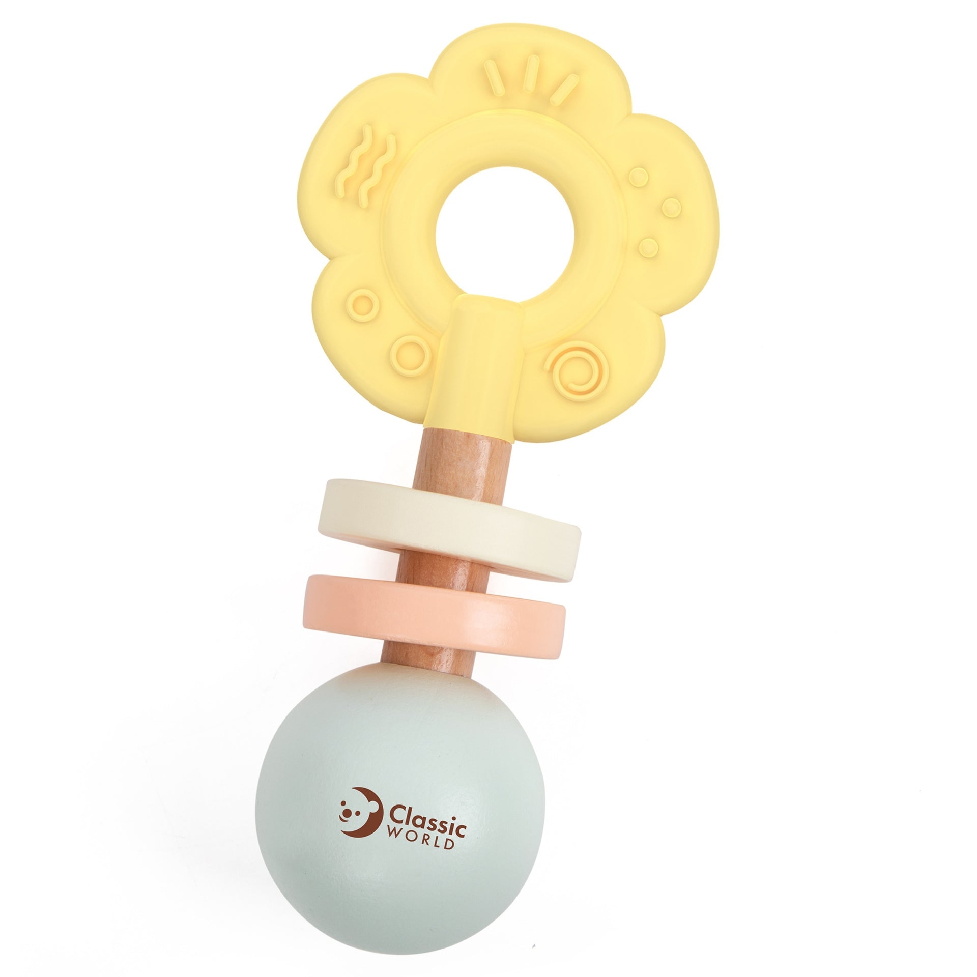 Šis „Classic World“ gaminys yra idealus pasirinkimas tėvams, ieškantiems estetiško, saugaus ir vystymą skatinančio žaislo. Dėl savo dvigubos paskirties, barškutis-kramtukas „Gėlė“ ilgam užims Jūsų mažylį ir palengvins sunkius dantukų dygimo etapus.