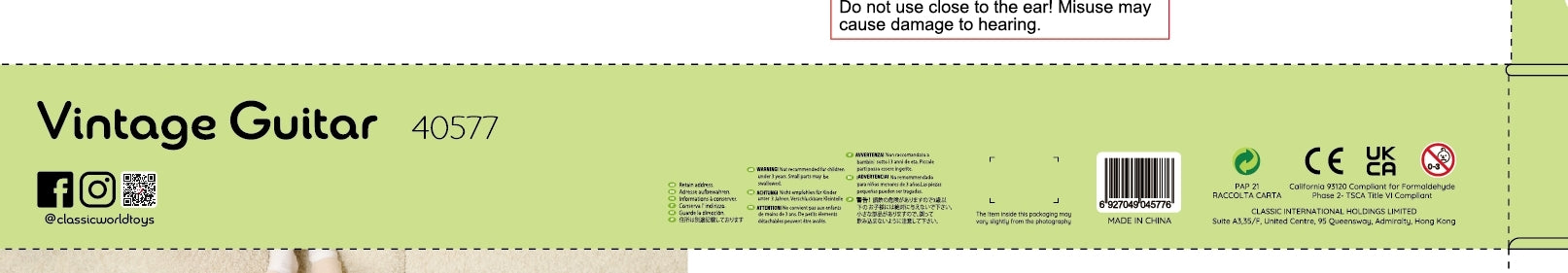 Ši pastelinė medinė CLASSIC WORLD gitara yra idealus pasirinkimas kaip pirmasis instrumentas jūsų vaikui. Vintažinio stiliaus instrumentas ne tik atrodo patraukliai, bet ir padeda vaikui lengvai žengti pirmuosius žingsnius muzikos pasaulyje, lavinant jo klausą.