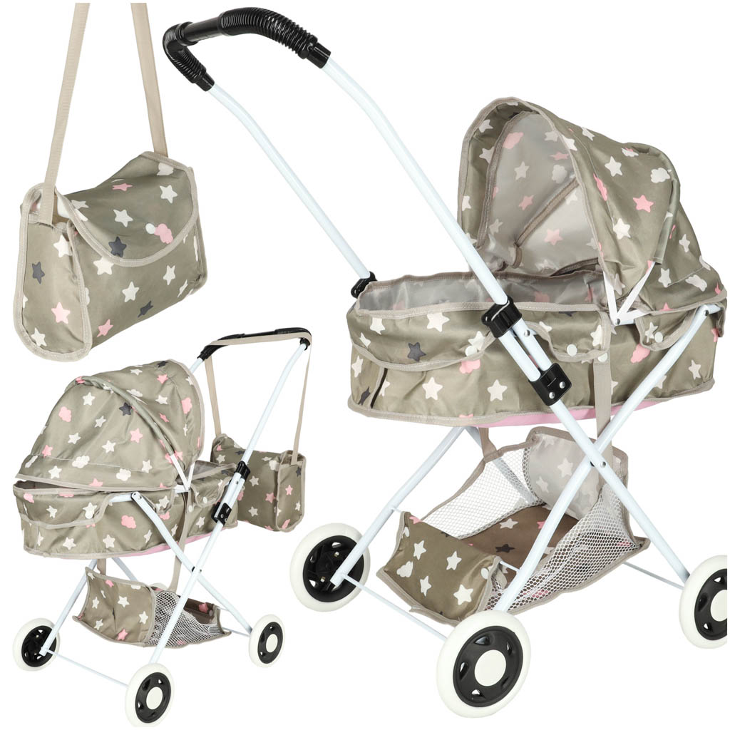Gilus gondolinis lėlių vežimėlis + žvaigždžių motyvų krepšys