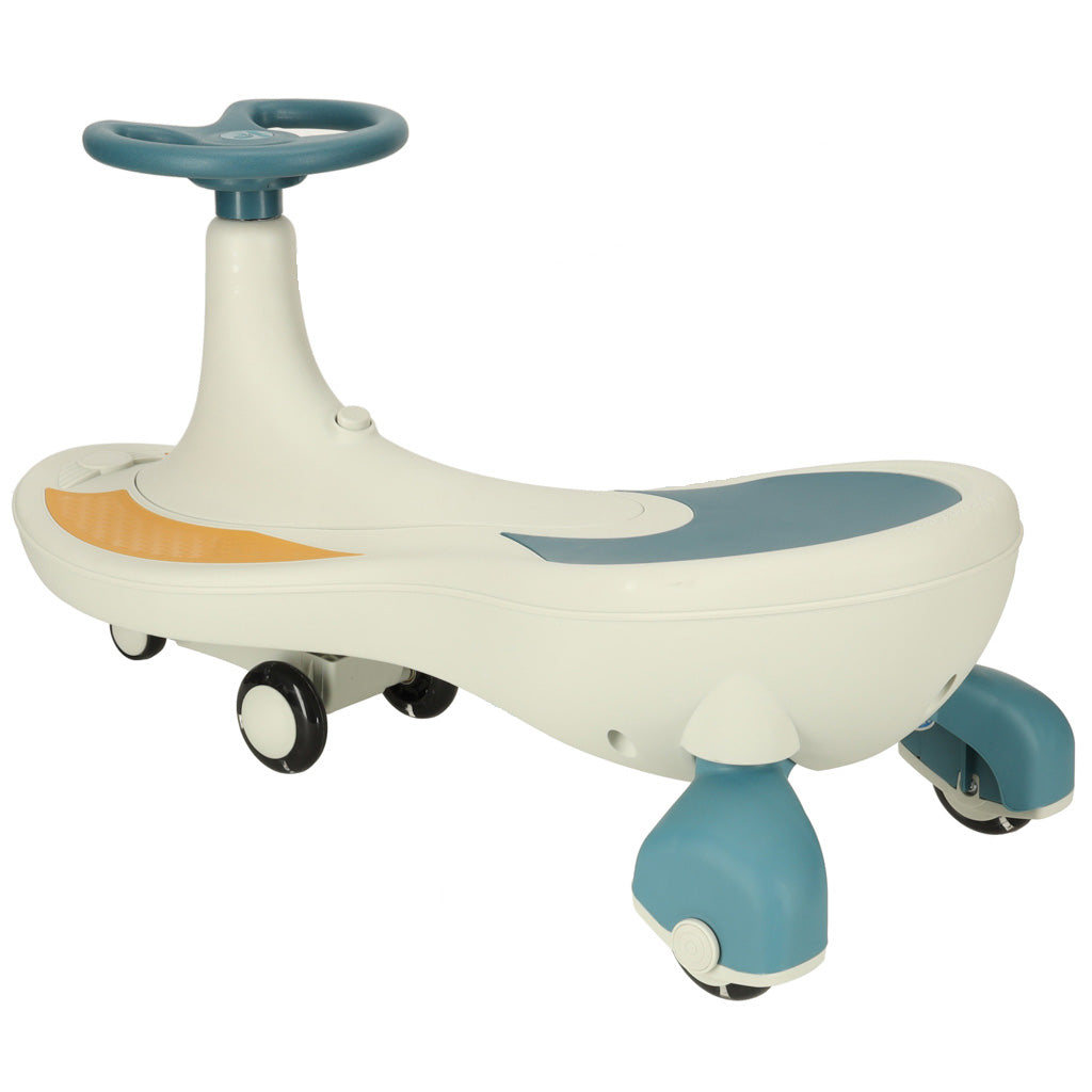 Siūbuojamas automobilis – tai novatoriška transporto priemonė, garantuojanti daug smagių valandų! Tam nereikia nei baterijų, nei kojų jėgos – norint jį pajudinti, tereikia pasukti vairą iš kairės į dešinę. Jame yra šviečiantys ratai , kurie įsijungia važiavimo metu, ir linksmos melodijos , kurios įjungiamos vienu mygtuko paspaudimu. Maksimali apkrova – 100 kilogramų , tad spektaklyje gali dalyvauti ir tėveliai. Didieji ratai pagaminti iš gumos, o mažieji – iš plastiko.