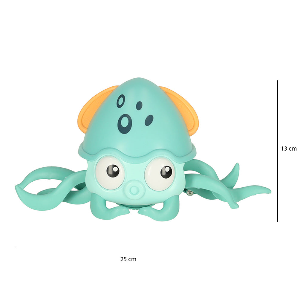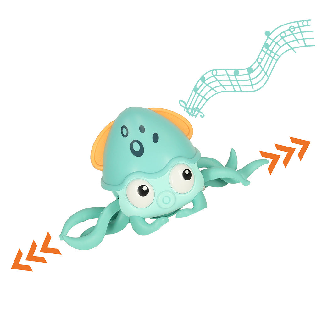 Mėlynasis aštuonkojis ne tik šliaužia, bet ir groja muziką - taigi žaisdamas jūsų vaikas taip pat stimuliuos klausą.