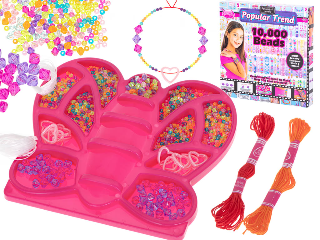 Rinkinyje yra net 10 000 elementų, kurių dėka iš mažos juvelyrės rankų išeis daugybė gražių, įvairių apyrankių, vėrinių ir kitų meno kūrinių!