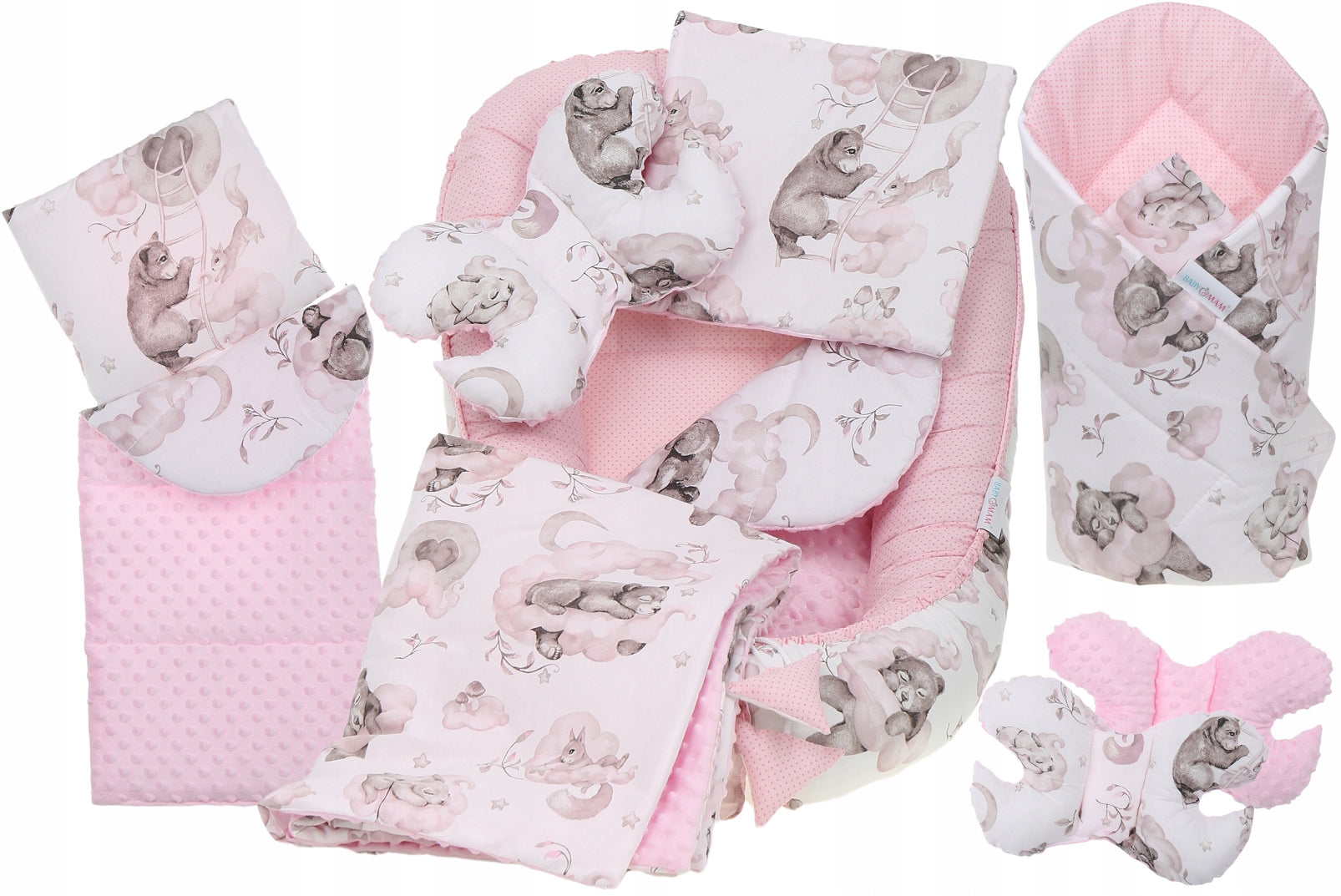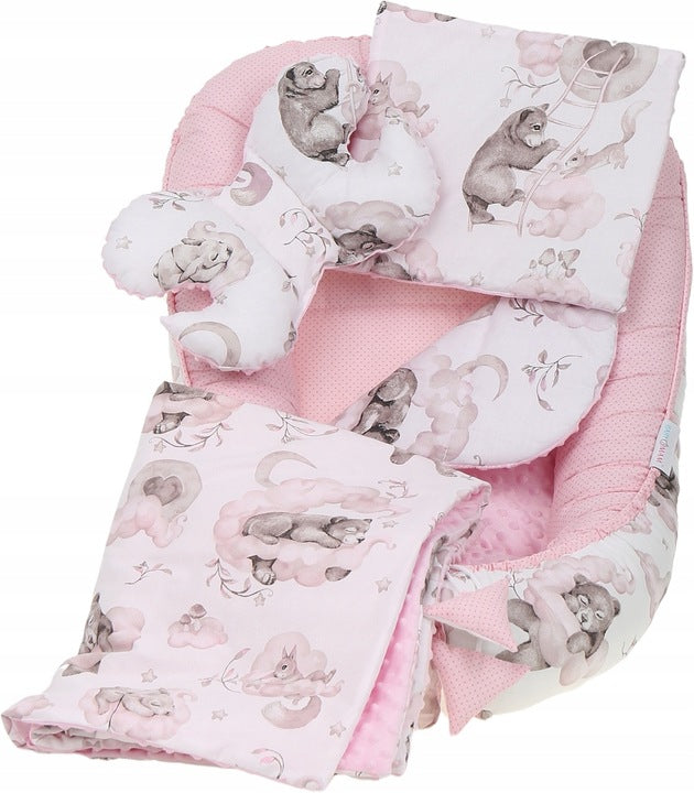 Kūdikio lizdelis su priedais, su miško gyvūnų raštu – vaizdas 2