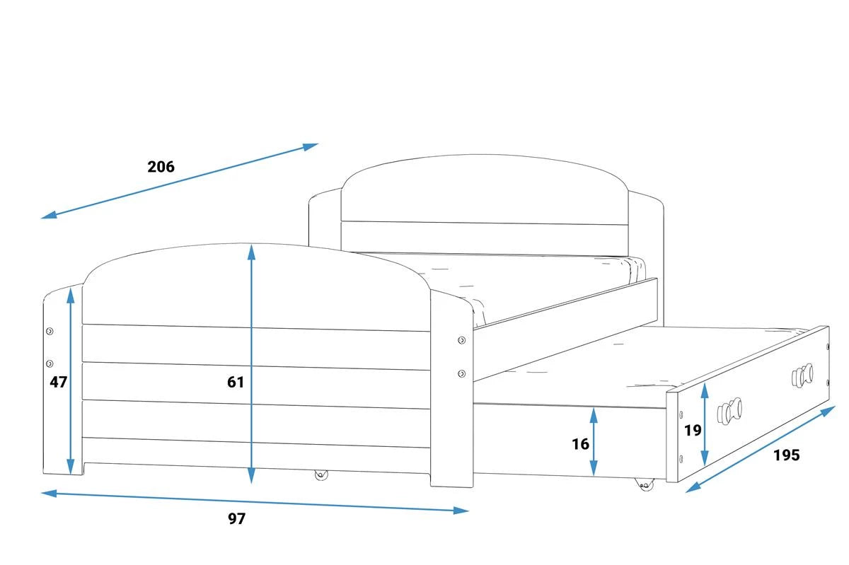 LiLi vaikiška lova 200x90 su čiužiniu ir papildoma lova