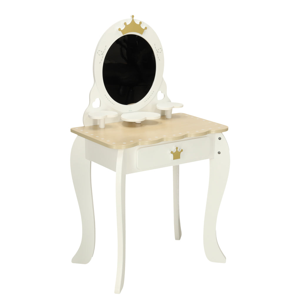 Šis medinis tualetinis staliukas ne tik papuoš mergaitės kambarį, bet ir skatins kūrybiškumą, vaizduotę bei padės ugdyti socialinius įgūdžius žaidžiant vaidmeninius žaidimus. Tai puiki dovana, kuri teiks džiaugsmo ilgą laiką.