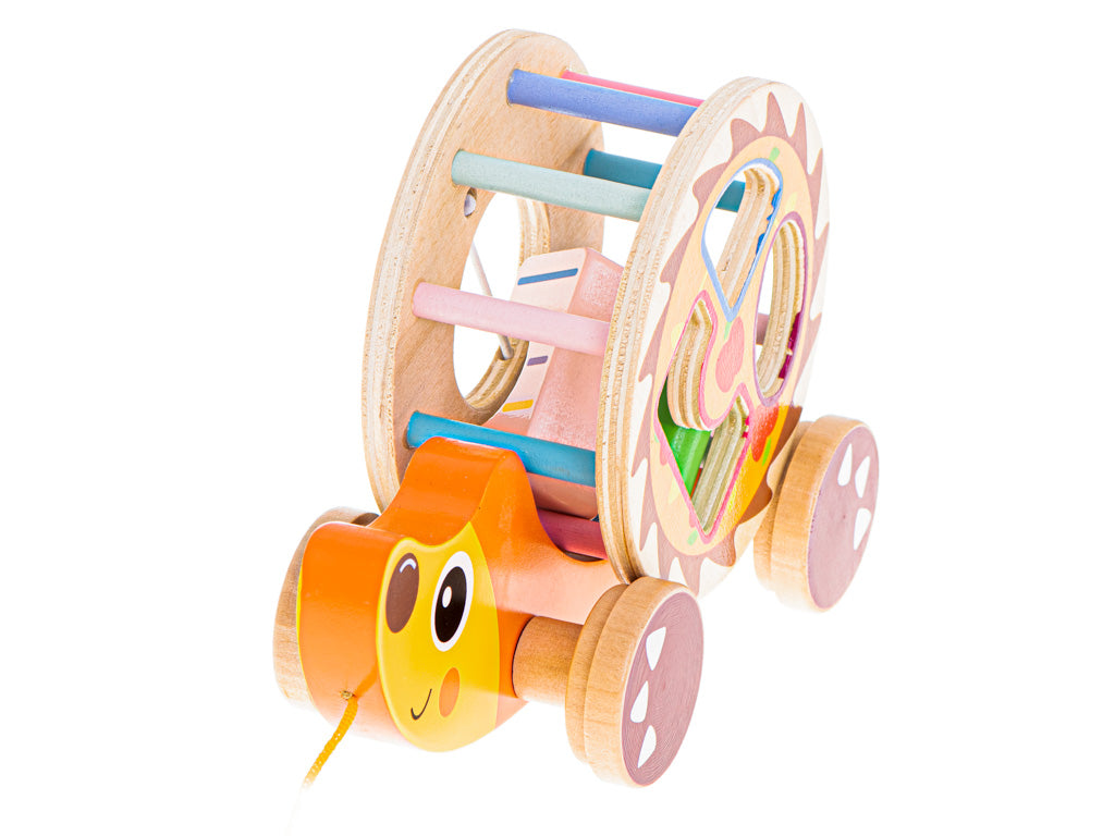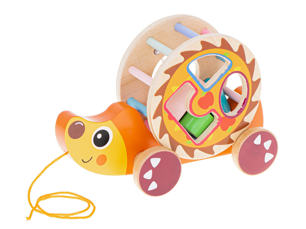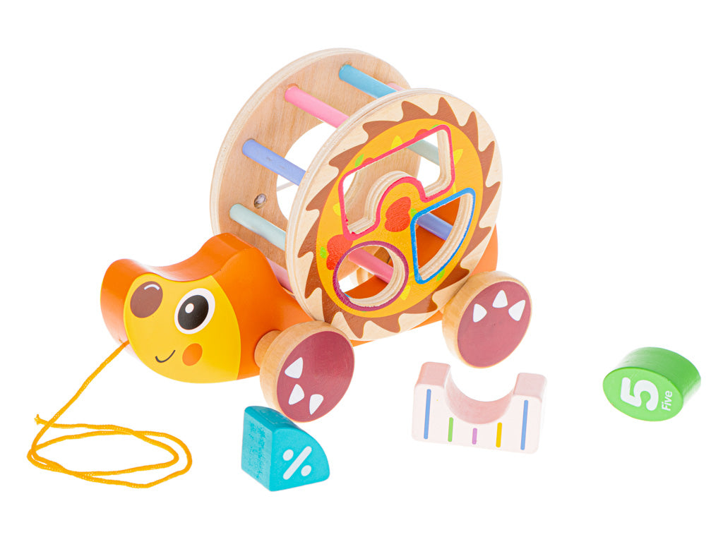 MEDINIS RŪŠIUOKLIS ANT VIRVUTĖS MOBILUSIS EŽIUKAS Kiekvienas vaikas nori augintinio! Mielas ežiuko formos rūšiuoklis mielai taps jūsų vaiko draugu! Žaislui žavingą išvaizdą suteikia šiltos ir malonios spalvos! Neabejotinai pritrauks mažylio dėmesį ir net suaugusieji nepraeis abejingai! Nors klasikinis rūšiuoklis yra paprastas žaislas, jis neabejotinai suteiks jūsų vaikui daug malonių pramogų! Pagal Montessori filosofiją, kuo mažiau sudėtingas žaislas, tuo daugiau jis gali išmokyti vaiką! Pagrindinė žaislo funkcija- rūšiuoklis, esantis ežiuko nugaroje. Rinkinyje yra 3 skirtingų formų kaladėlės, o kiekviena kaladėlė telpa į tam tikrą skylę! Apvalųjį rūšiuotuvą galima nuimti nuo transporto priemonės, todėl spalvotas kaladėles įdėti daug lengviau! Dėl patogaus ilgo laido mažąjį ežiuką galima pasiimti ilgam ir maloniam pasivaikščiojimui! Važiuojant rūšiuoklė sukasi, o tai suteikia papildomo efekto! Nepaisant to, koks paprastas žaislas yra rūšiuoklis, jis puikiai tinka bendram vaiko vystymuisi. Jis akimirksniu pagerins jūsų vaiko intelektinius gebėjimus, padės mokytis atskirti formas, o spalvingas dizainas padės atskirti ir įvardyti spalvas ! Jūsų vaiko rankų darbo įgūdžiai tikrai neatsiliks! Iš pradžių gali atrodyti, kad teisingai sudėlioti plytas yra sudėtinga užduotis, kuri turės teigiamos įtakos rankų judesių tikslumui, kvadratų tikslumui ir akies-rankos koordinacijai. Visi gaminio elementai pagaminti iš medžio, kuris buvo kruopščiai nušlifuotas ir padengtas netoksiškais dažais, todėl yra visiškai saugus jūsų mažyliui! Jums nereikia jaudintis, kad jis susižeis ar gaus atplaišą! Mediniai žaislai yra puiki alternatyva tiems, kurie brangina aplinką. Palyginti su plastikinėmis alternatyvomis, jos palieka daug mažesnį anglies pėdsaką! Dėl to jie ne tik daug tvirtesni ir gražesni, bet ir nedaro neigiamo poveikio aplinkai! Rinkdamiesi medinius gaminius prisidedate prie natūralios gamtos išsaugojimo!