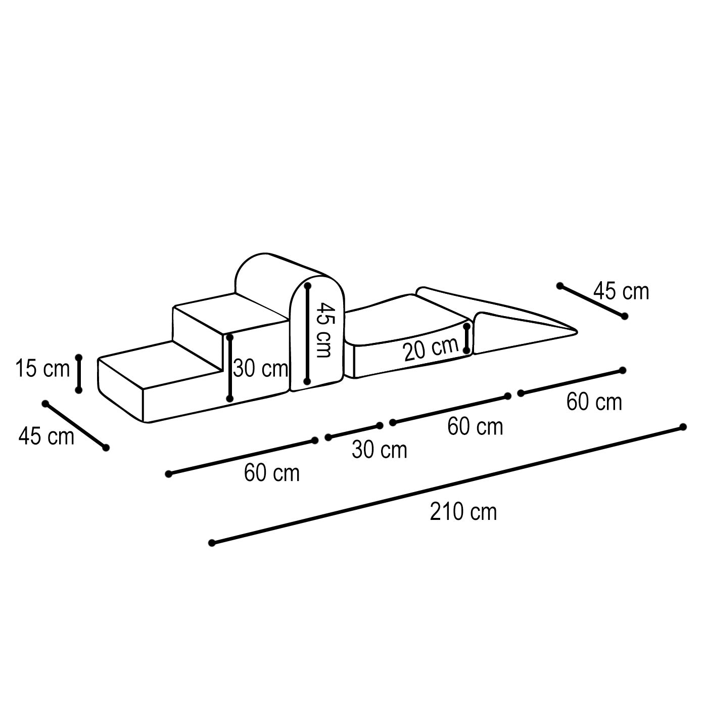 Rinkinys padengtas aukščiausios kokybės veliūro audiniu (premium kordurojus), kuris yra nepaprastai švelnus ir malonus liesti, užtikrinantis komfortą net jautriausiai odai. Dėl lengvų putplasčio blokų vaikas gali pats perkelti ir konstruoti naujas formas, ugdydamas kūrybiškumą ir erdvės suvokimą.