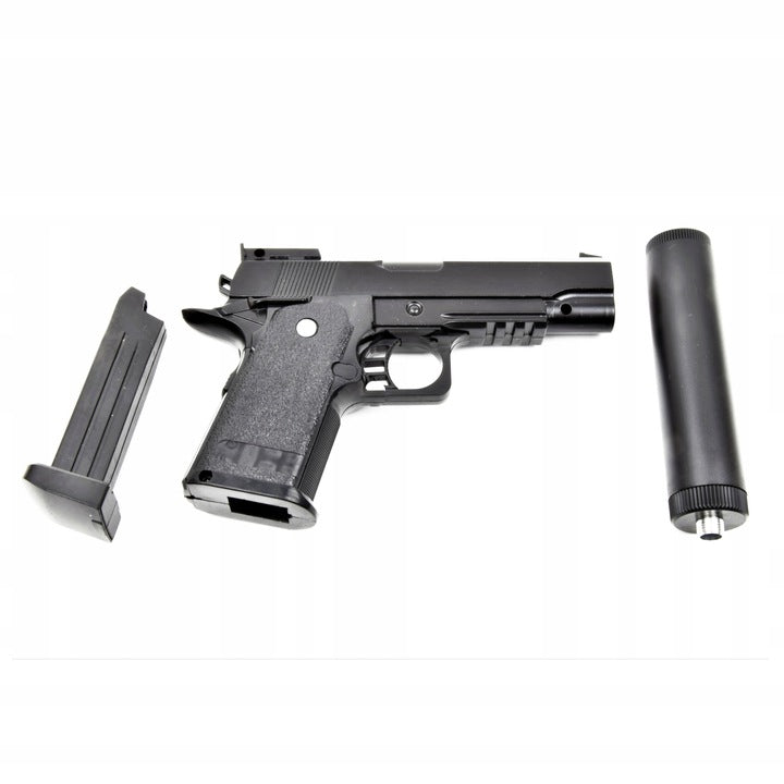 - pistoleto su duslintuvu dydis - 30 cm ilgio x 12,5 cm aukščio