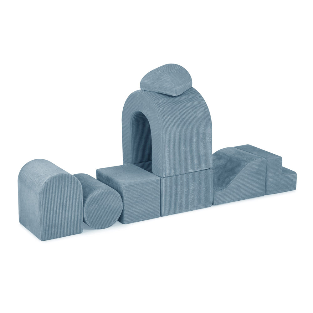 Pristatome „PLUSH NEST“ prabangų, modulinių minkštų elementų žaidimų rinkinį – pilį, sukurtą, kad kiekviena akimirka taptų nuotykiu! Šis unikalus rinkinys yra pagamintas iš aukščiausios kokybės mėlyno velveto (corduroy), kuris yra ne tik ilgaamžis, bet ir neįtikėtinai švelnus prisiliesti. Jis garantuoja maksimalų saugumą ir komfortą, tūkstančius valandų tyrinėjant ir žaidžiant.