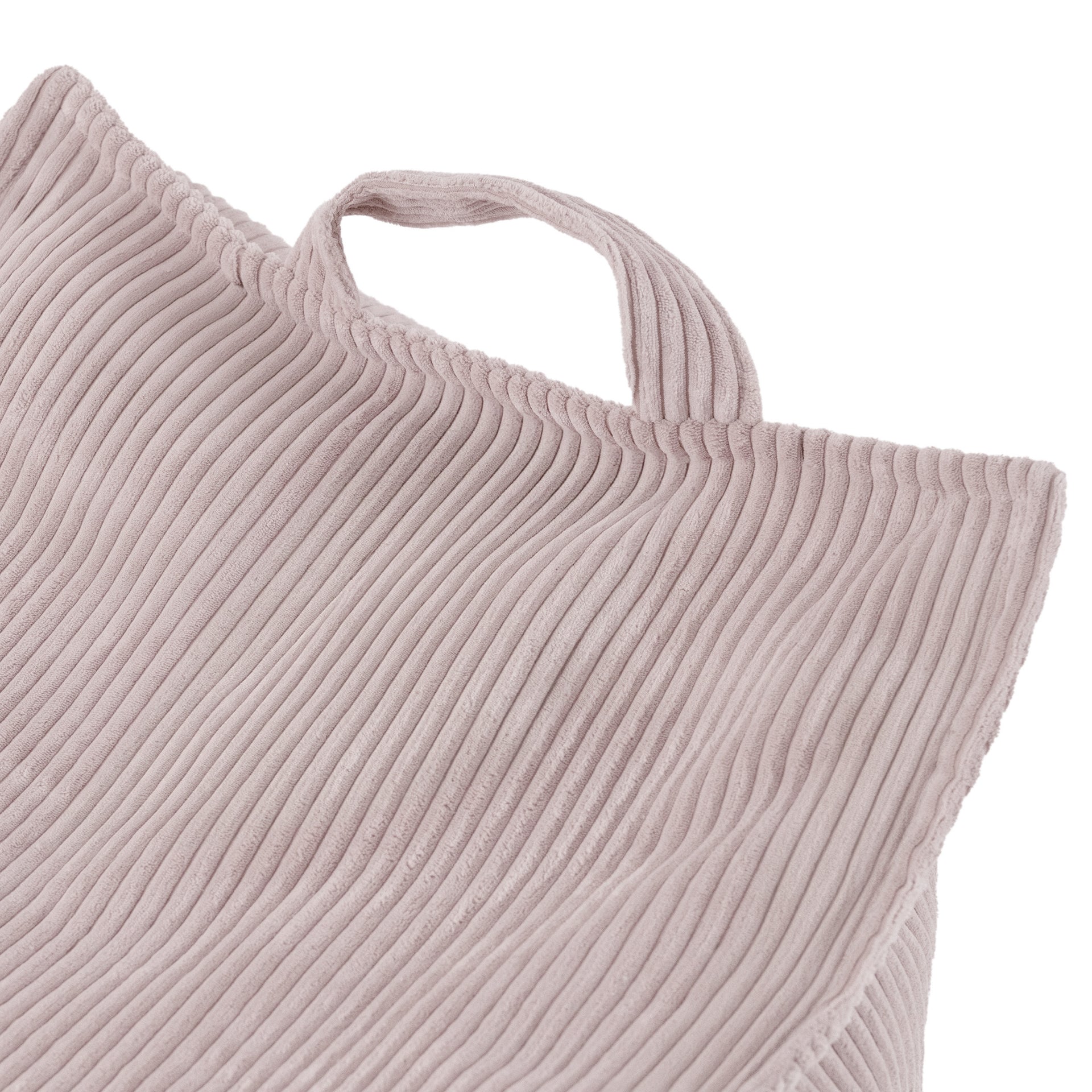 Fotelis pagamintas iš aukščiausios kokybės, patvaraus šviesiai rožinio veliūro (kordo) audinio, kuris yra minkštas, malonus liesti ir itin lengvai prižiūrimas. Užvalkalą galima skalbti rankomis (apie 30°C).
