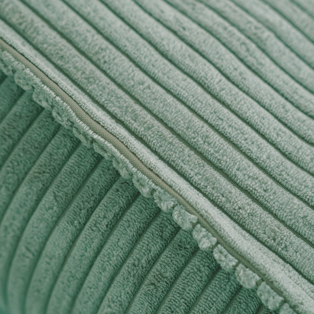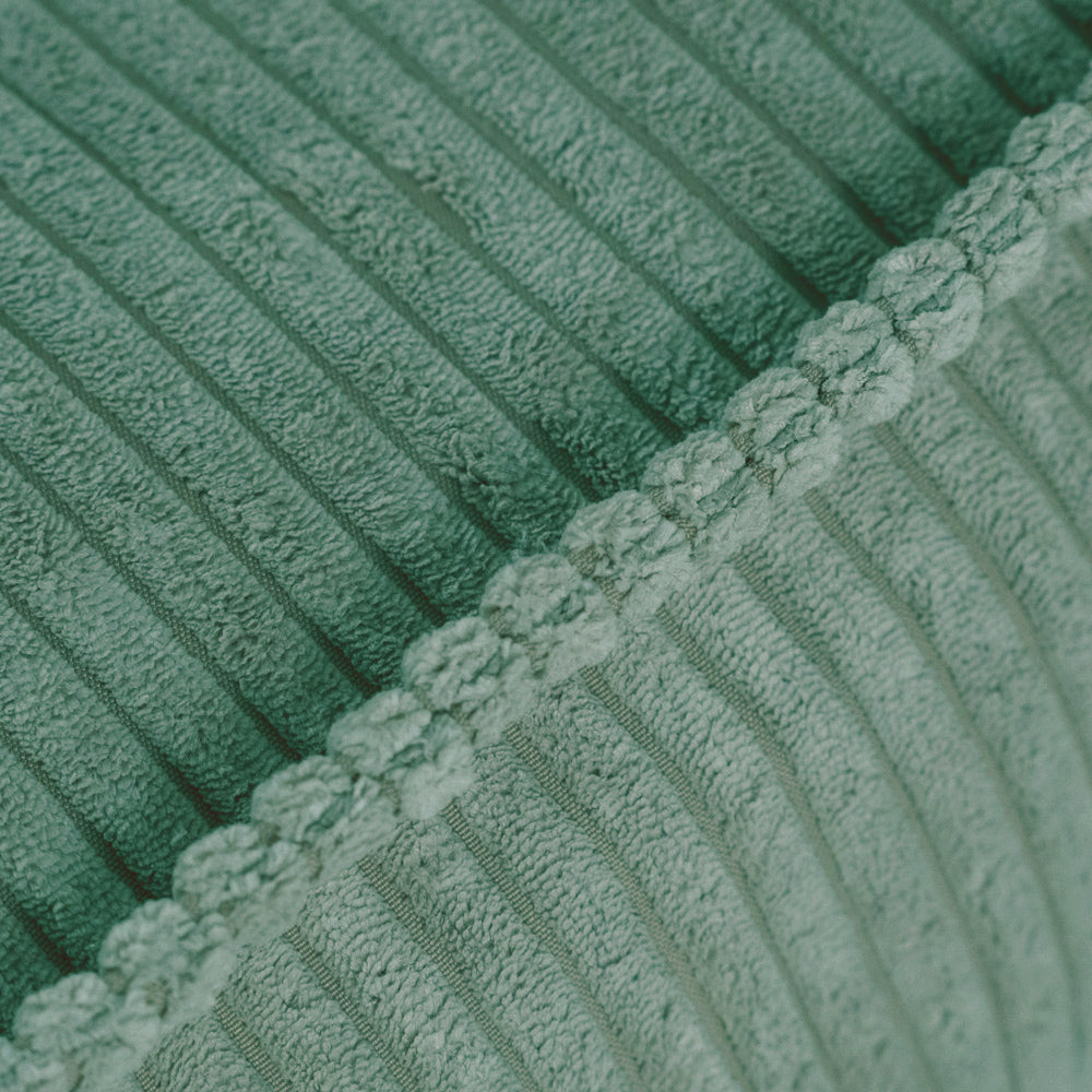 Stilinga Detalė: Švelnus žalias korduro audinys ne tik malonus liesti, bet ir suteikia elegancijos bei jaukumo bet kokiam interjerui.