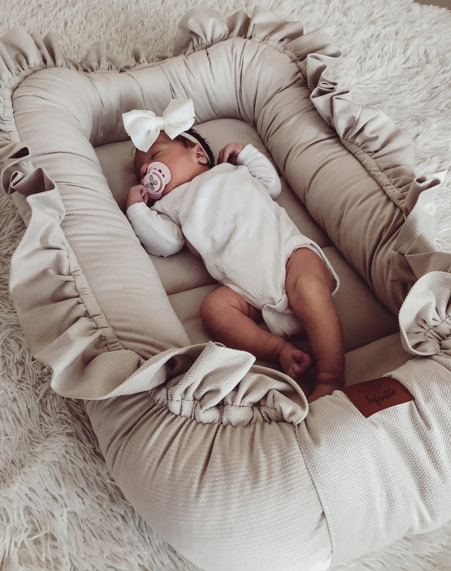 Premium Kūdikių lizdelis iš švelnaus aksominio audinio su dekoratyvine raukšle