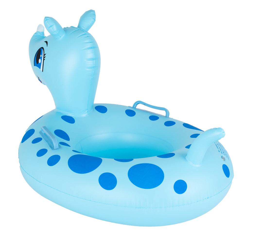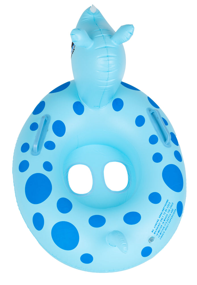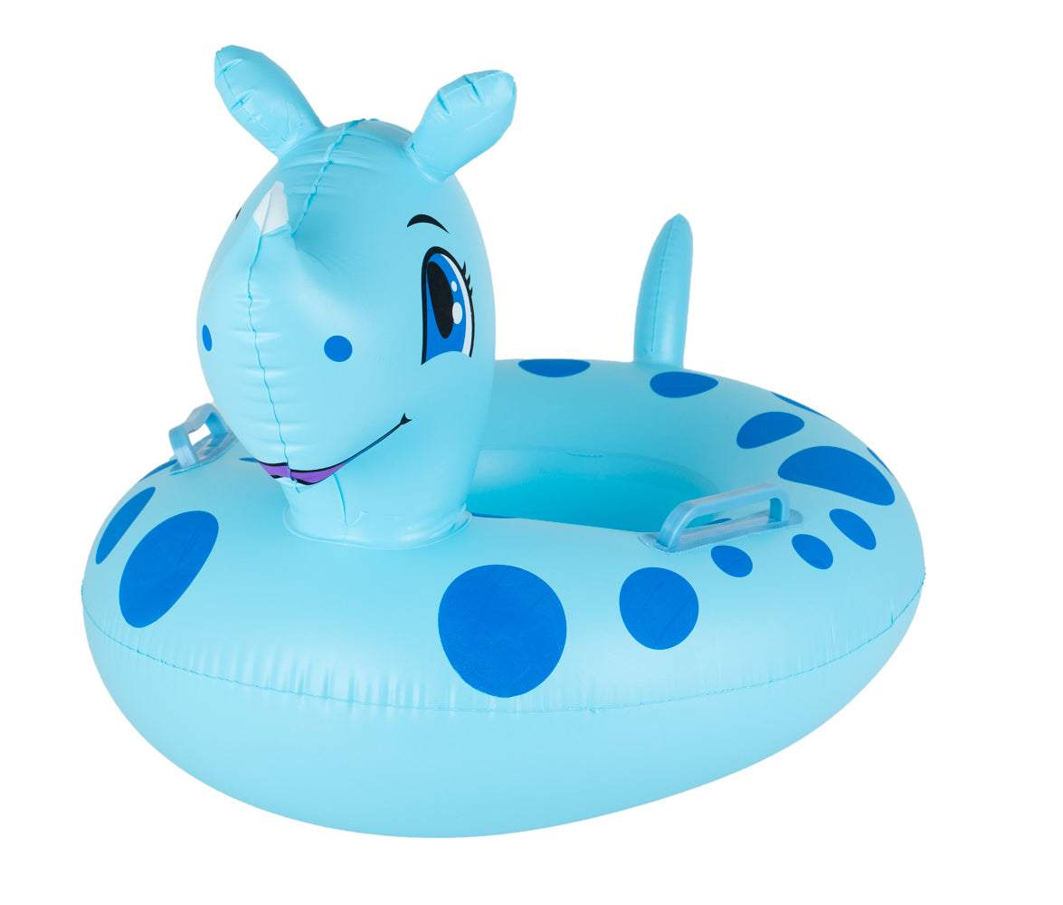 Vaikiškas raganosio formos pontonas, pagamintas iš aukštos kokybės PVC, kad būtų patvarus.