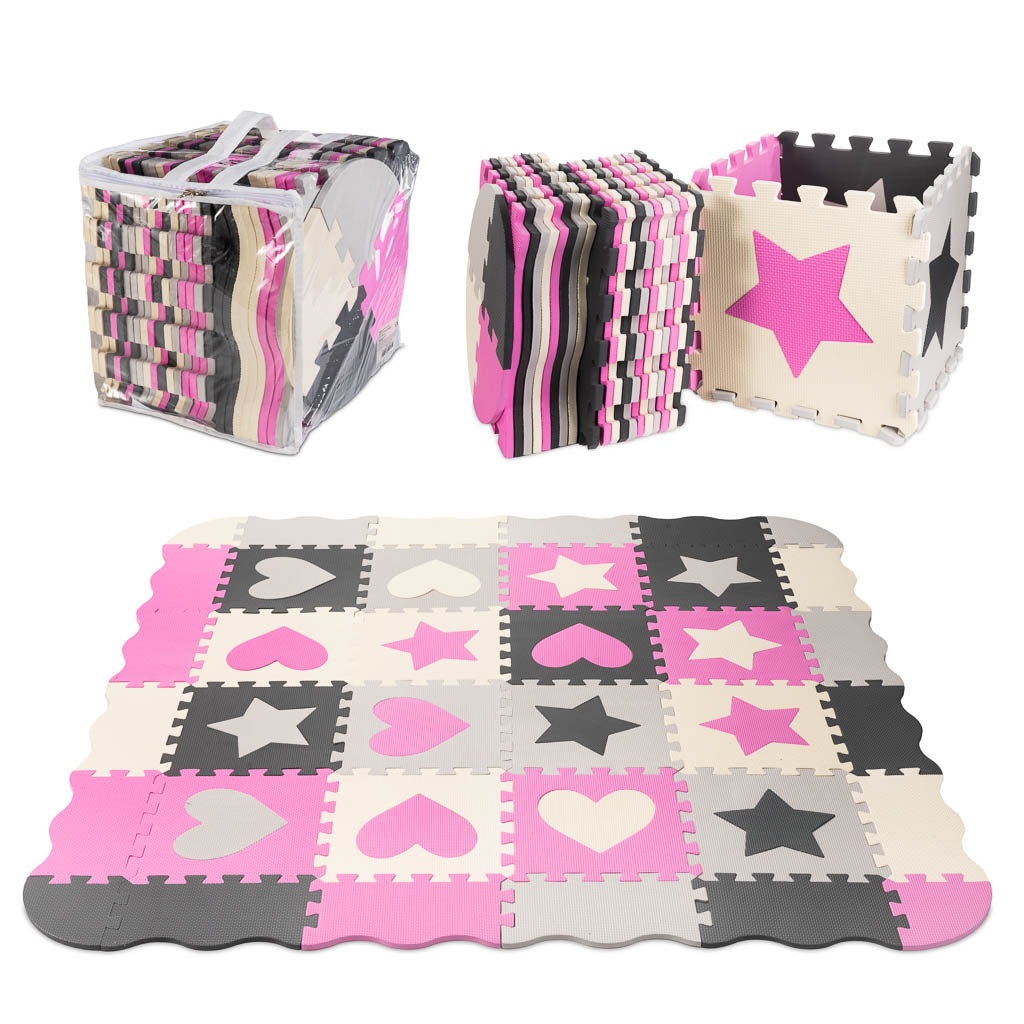 Putplasčio kilimėlis/žaisloteka 36el pilka-rožinė-juoda-raudona