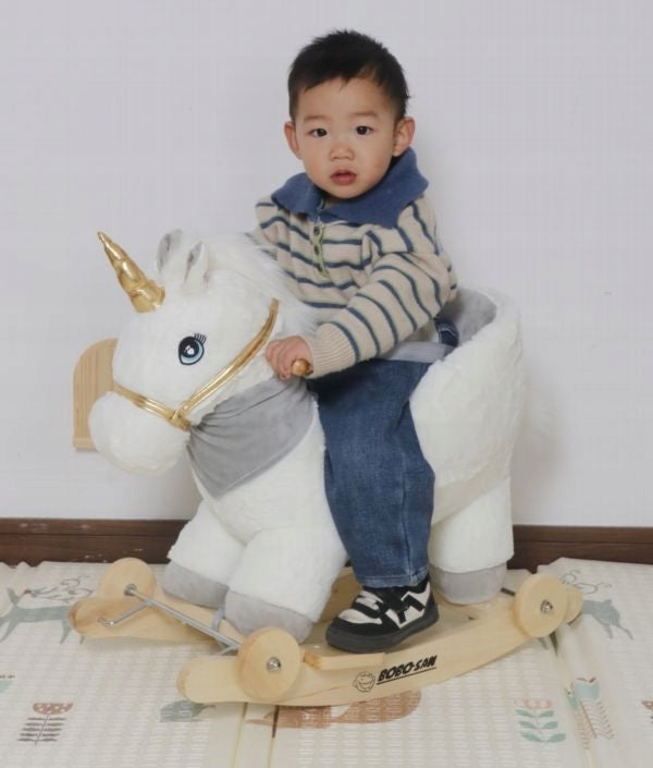 Šis nuostabus, minkštas supamasis arkliukas su ratukais – puikus žaislas vaikams nuo 12 mėnesių. Jis gali būti naudojamas tiek kaip supamasis arkliukas su slydimo pagrindu, tiek kaip važiuojamasis žaislas su ratukais. Toks dizainas užtikrina, kad žaislas augs kartu su jūsų vaiku, pritaikydamas skirtingus žaidimo etapus.