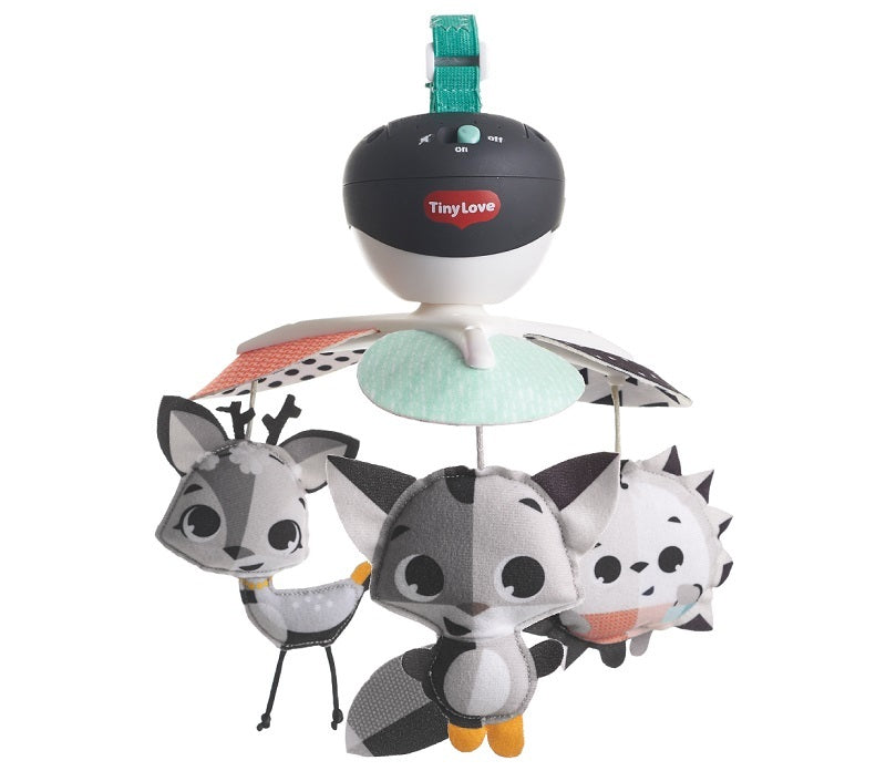 Specialus užsegimas leidžia karuselę pritvirtinti prie daugumos kelioninių lovelių, maniežų, automobilinių kėdučių, lopšių ir vežimėlių.